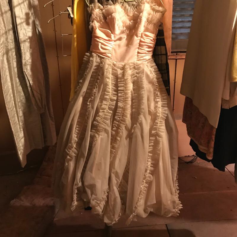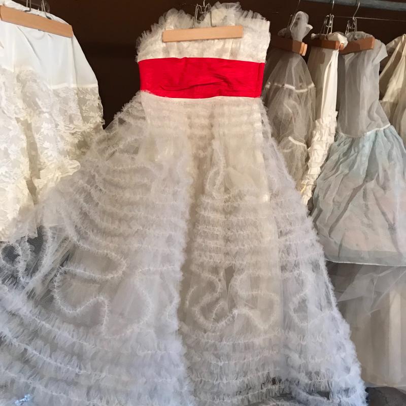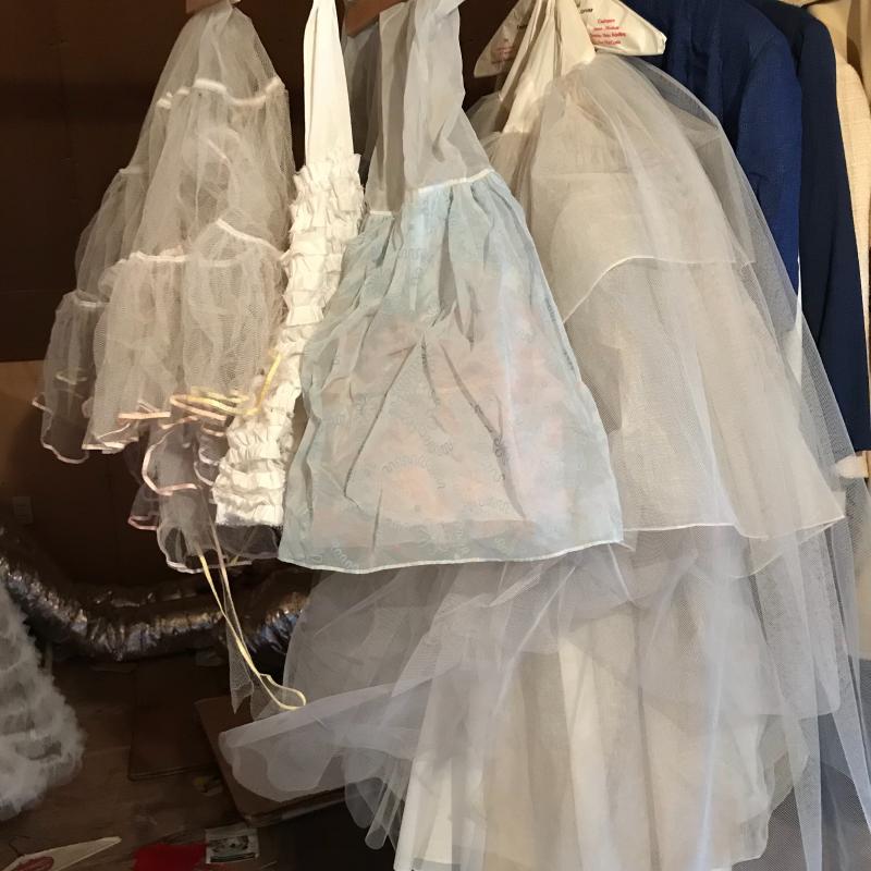 Lot includes two vintage wedding dresses, several petticoats, a vintage vintage prom dress and what appears to be a bridesmaid dress. Small sizes. Shipping available or local pickup in Asheville, NC.