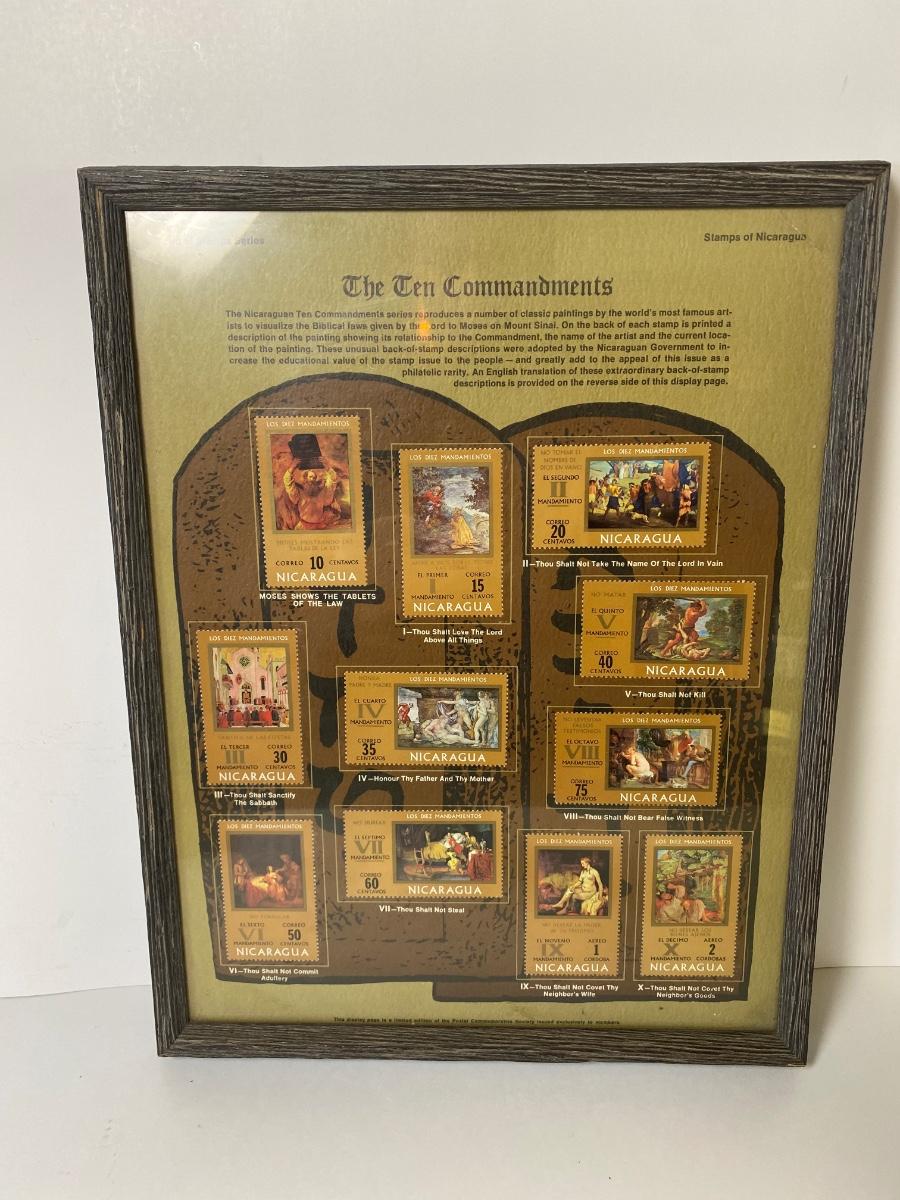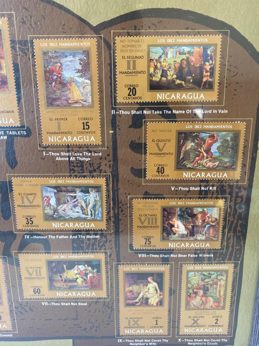 LOT262C: The Ten Commandments Stamps from Nicaragua, King James Bible, Mary & Jesus Figurines