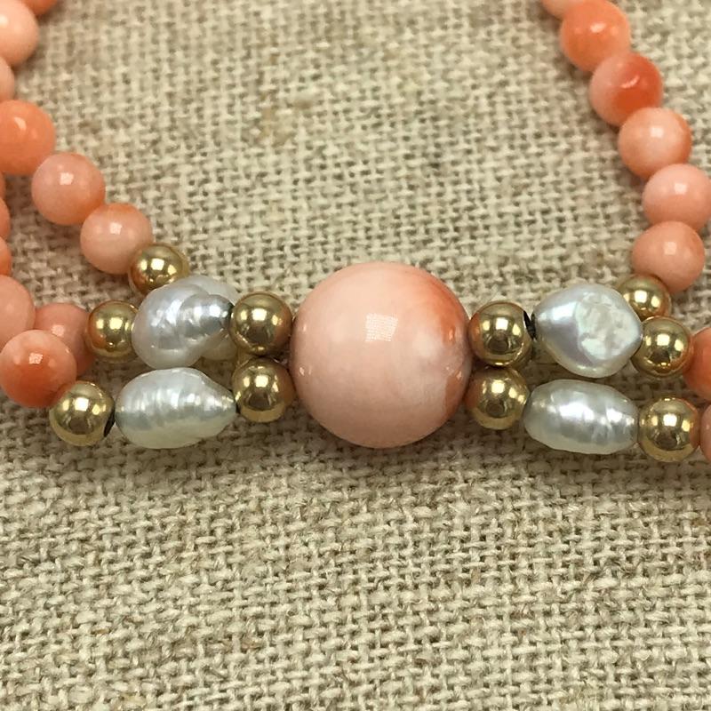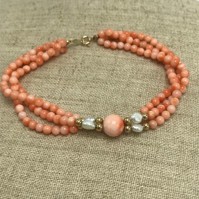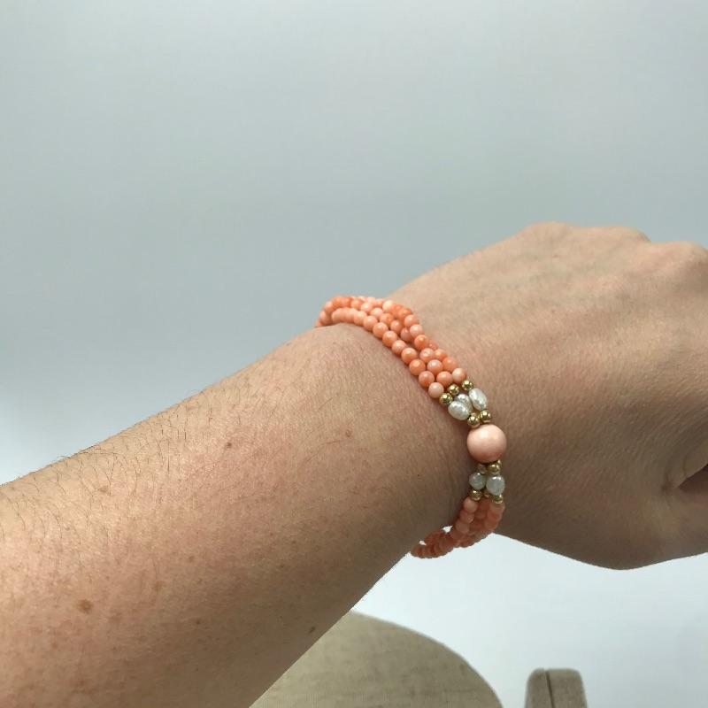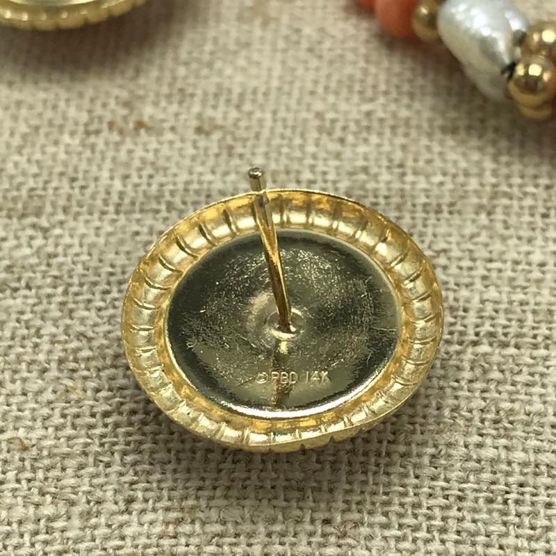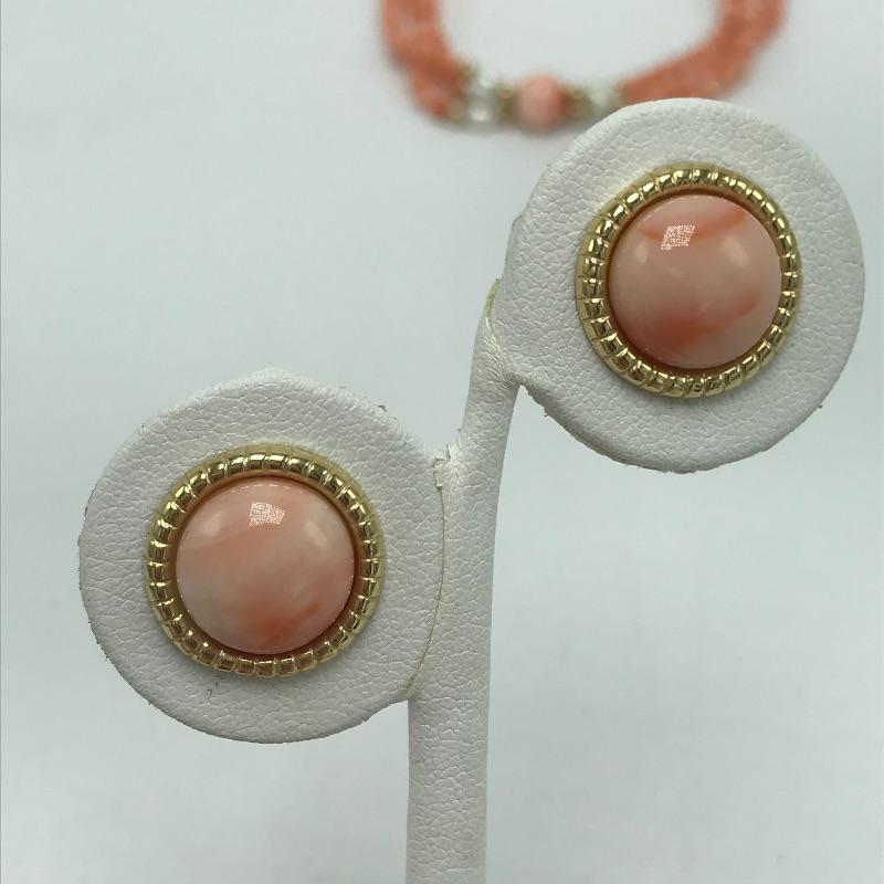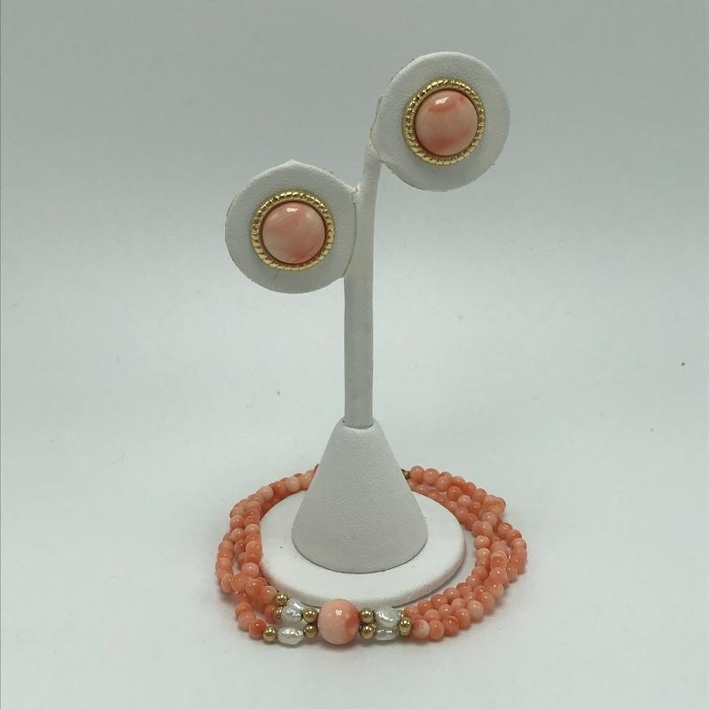 Beautiful PBD 14K earrings with matching colored bracelet with 14K mark and pearls.