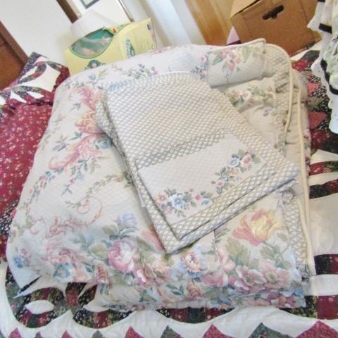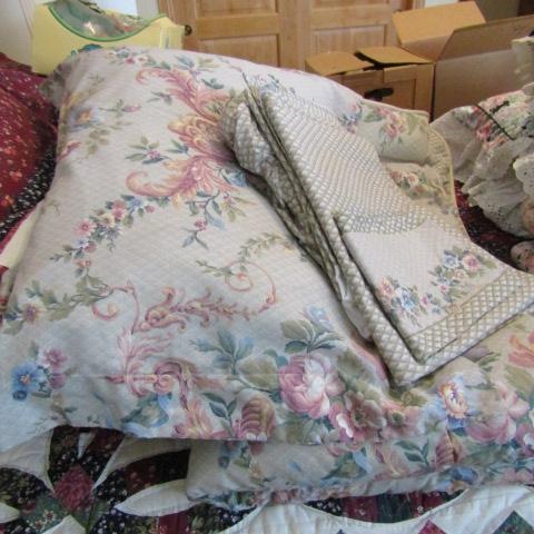 QUEEN SIZE COMFORTER AND A VARIETY OF LINENS
