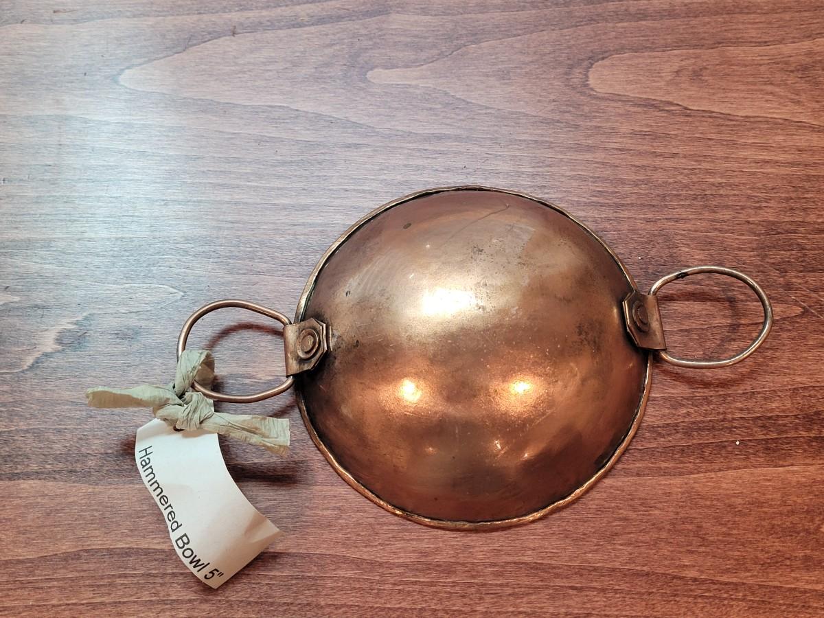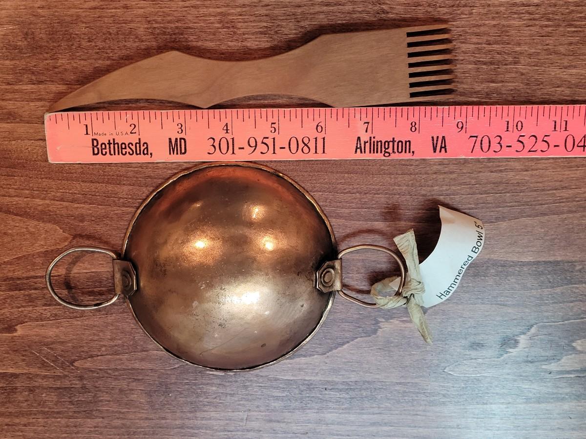 Lot 263: Hammered Copper Bowl  and Wood Tool