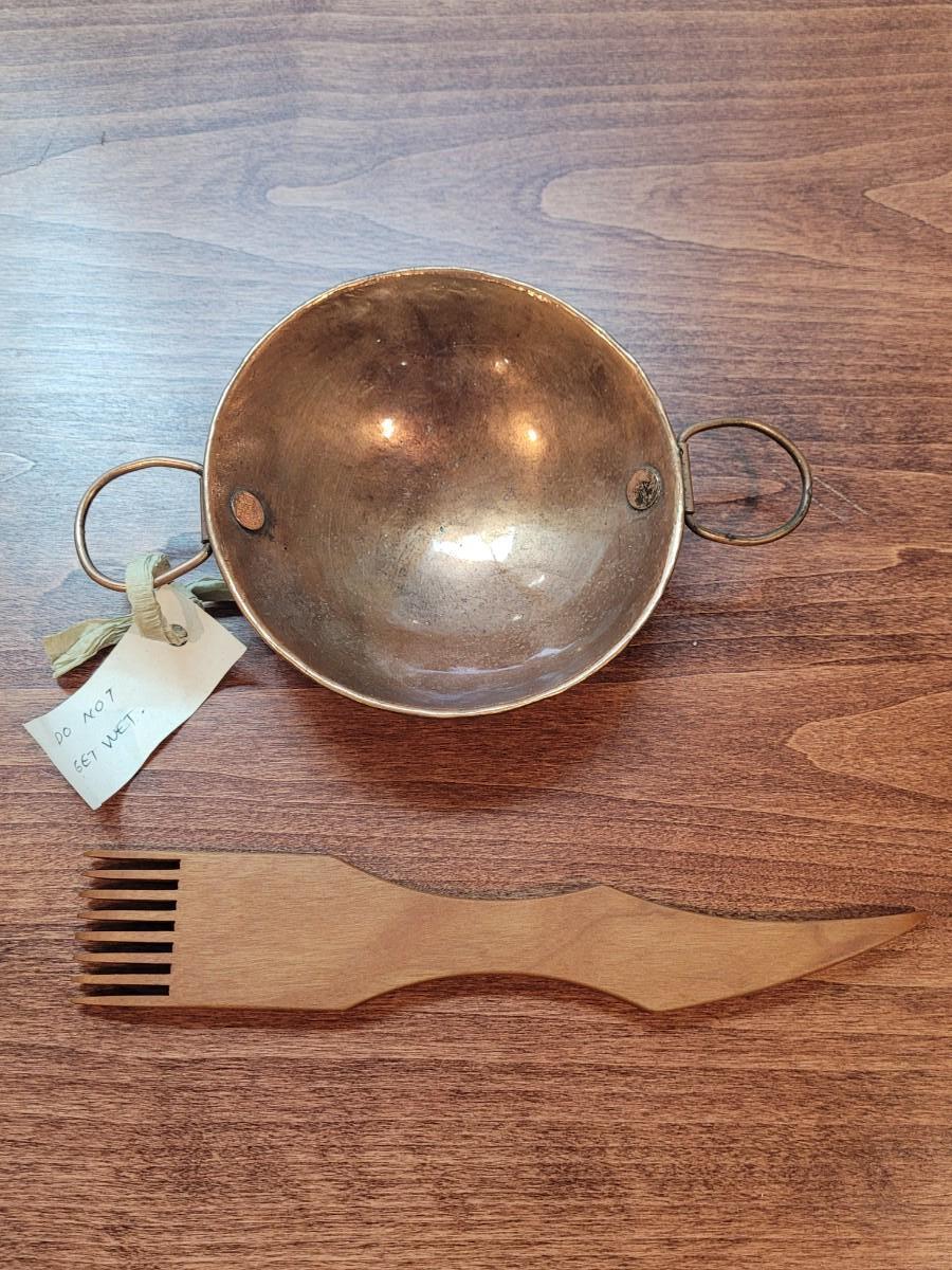 Lot 263: Hammered Copper Bowl and Wood Tool