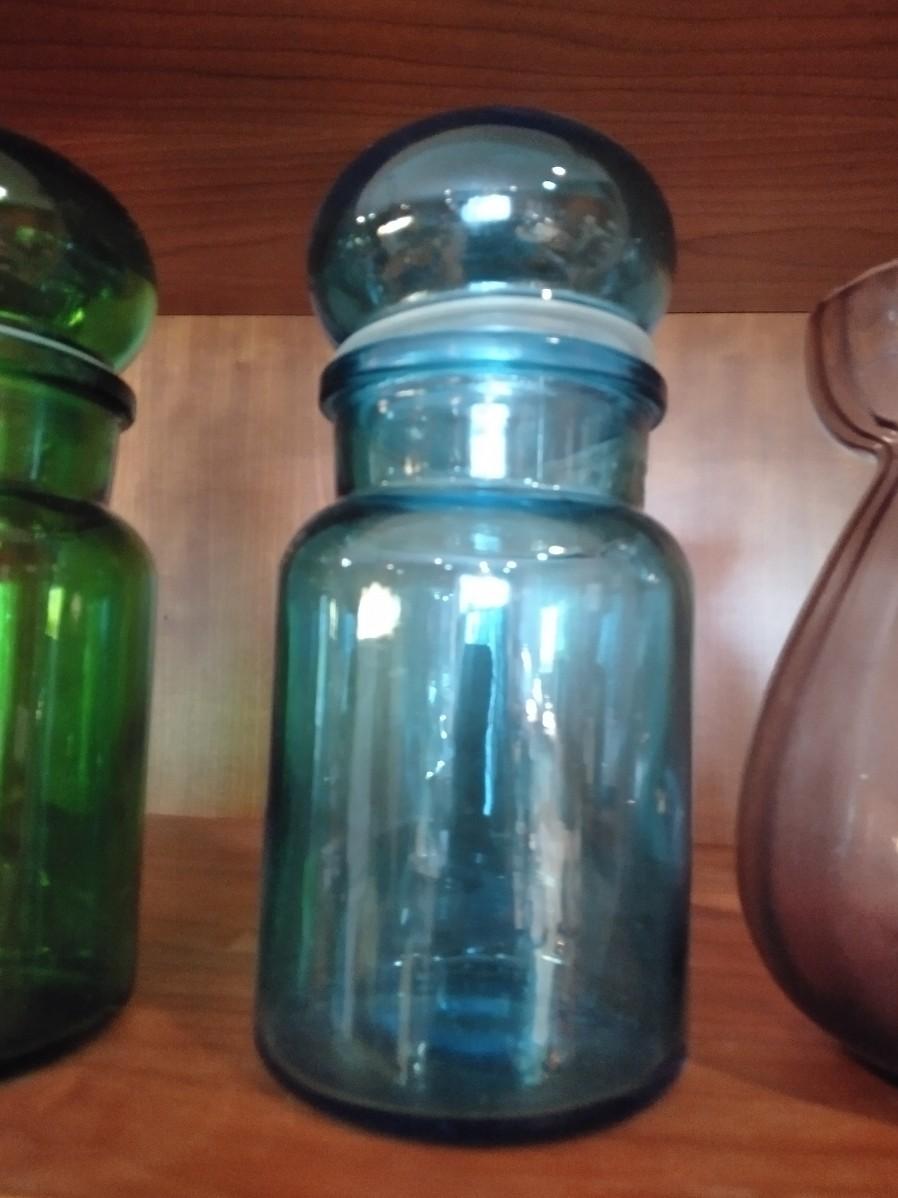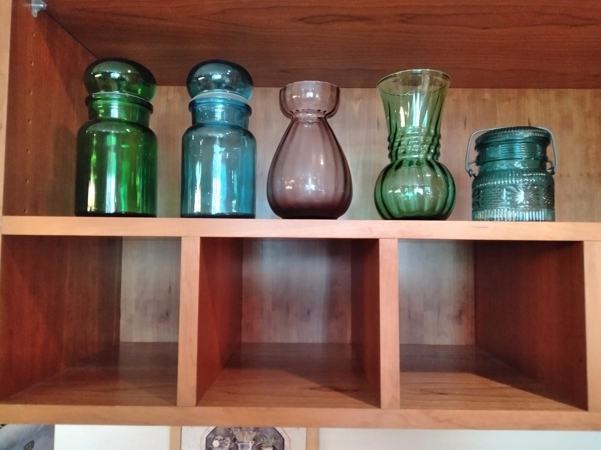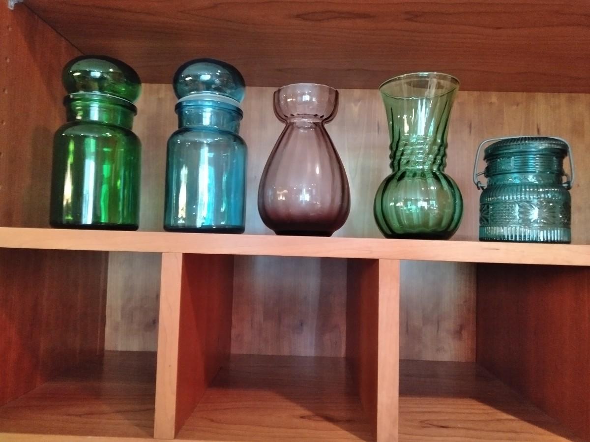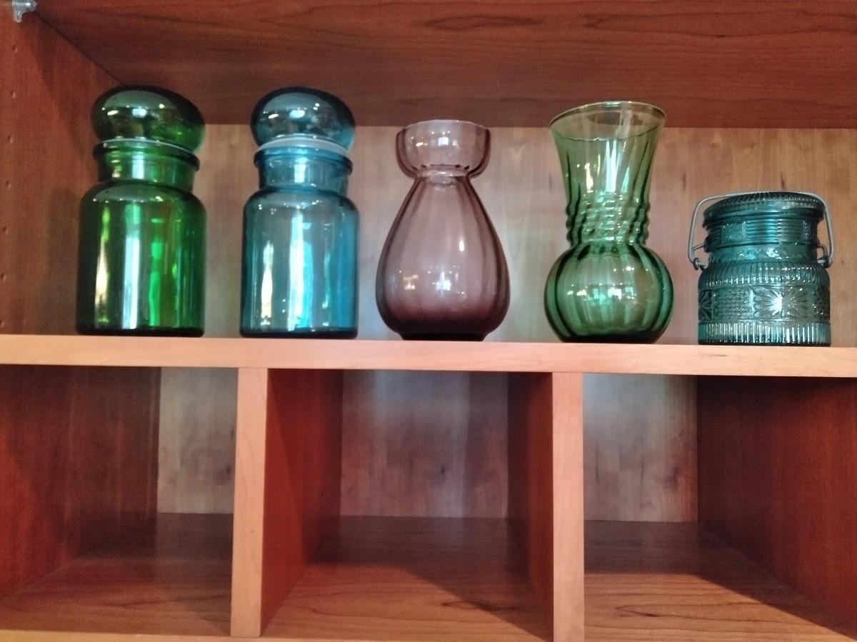 LOT 263 COLORFUL GLASS VASES AND CANISTERS