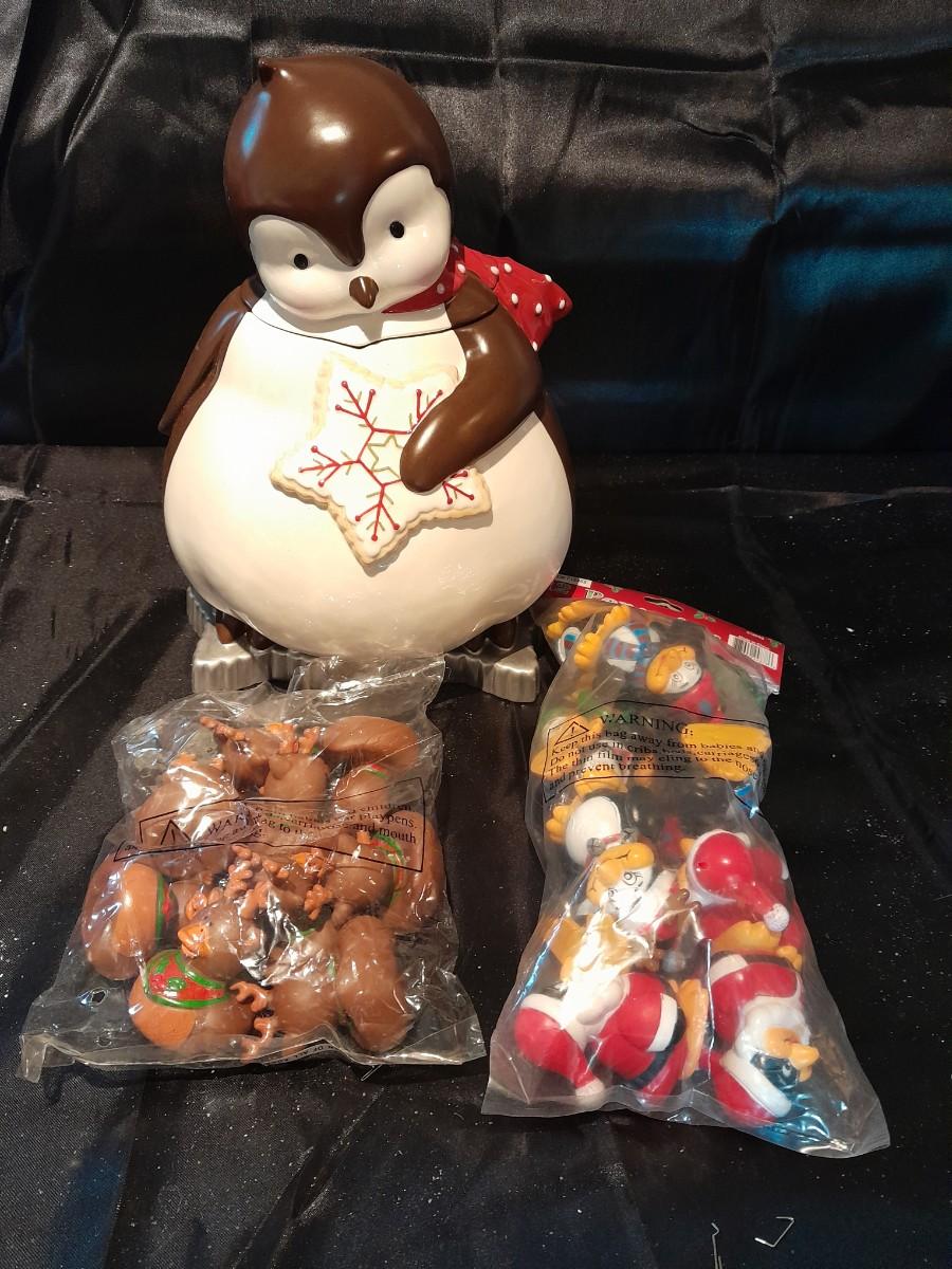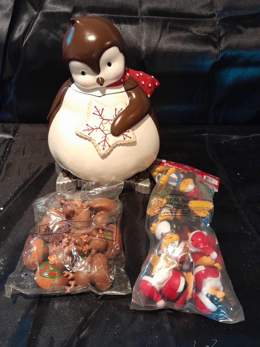 DEPT. 56 PENGUIN COOKIE JAR, CHRISTMAS THEMED RUBBER DUCKS AND PENGUINS