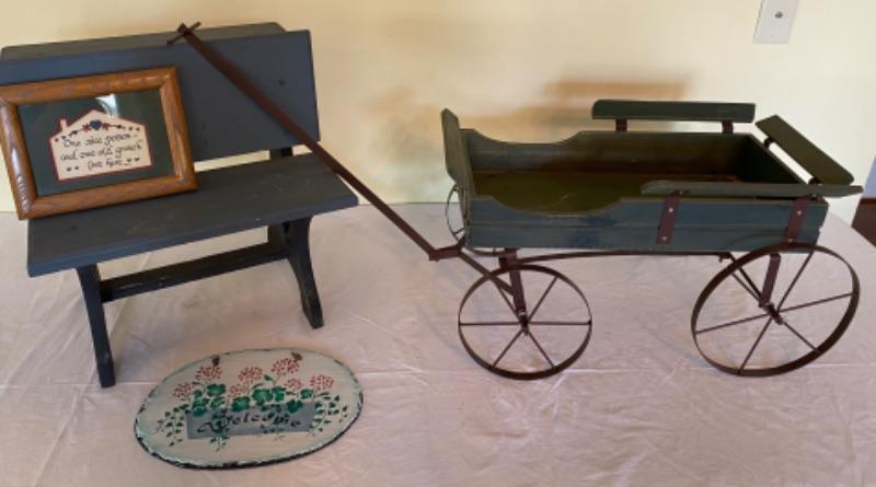 Lot #263 Doll Desk And Wagon with Slate sign