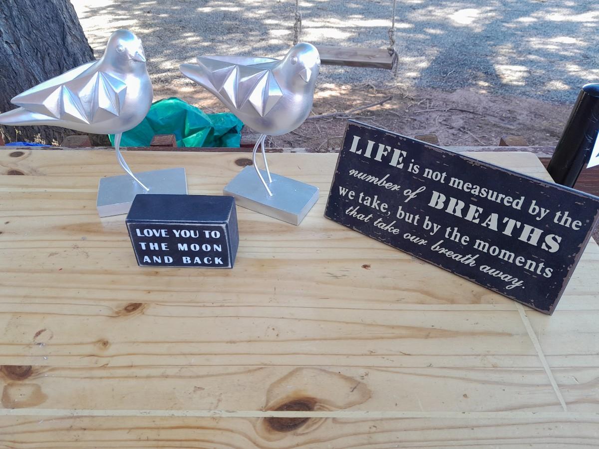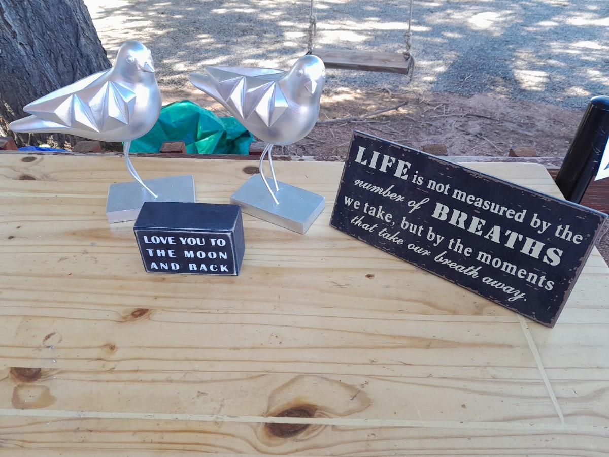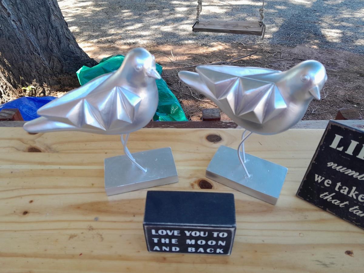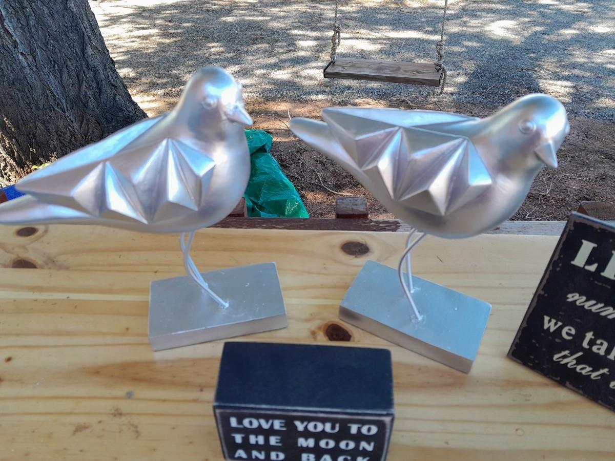 2 CANVAS WALL HANGINGS AND 2 BIRDS