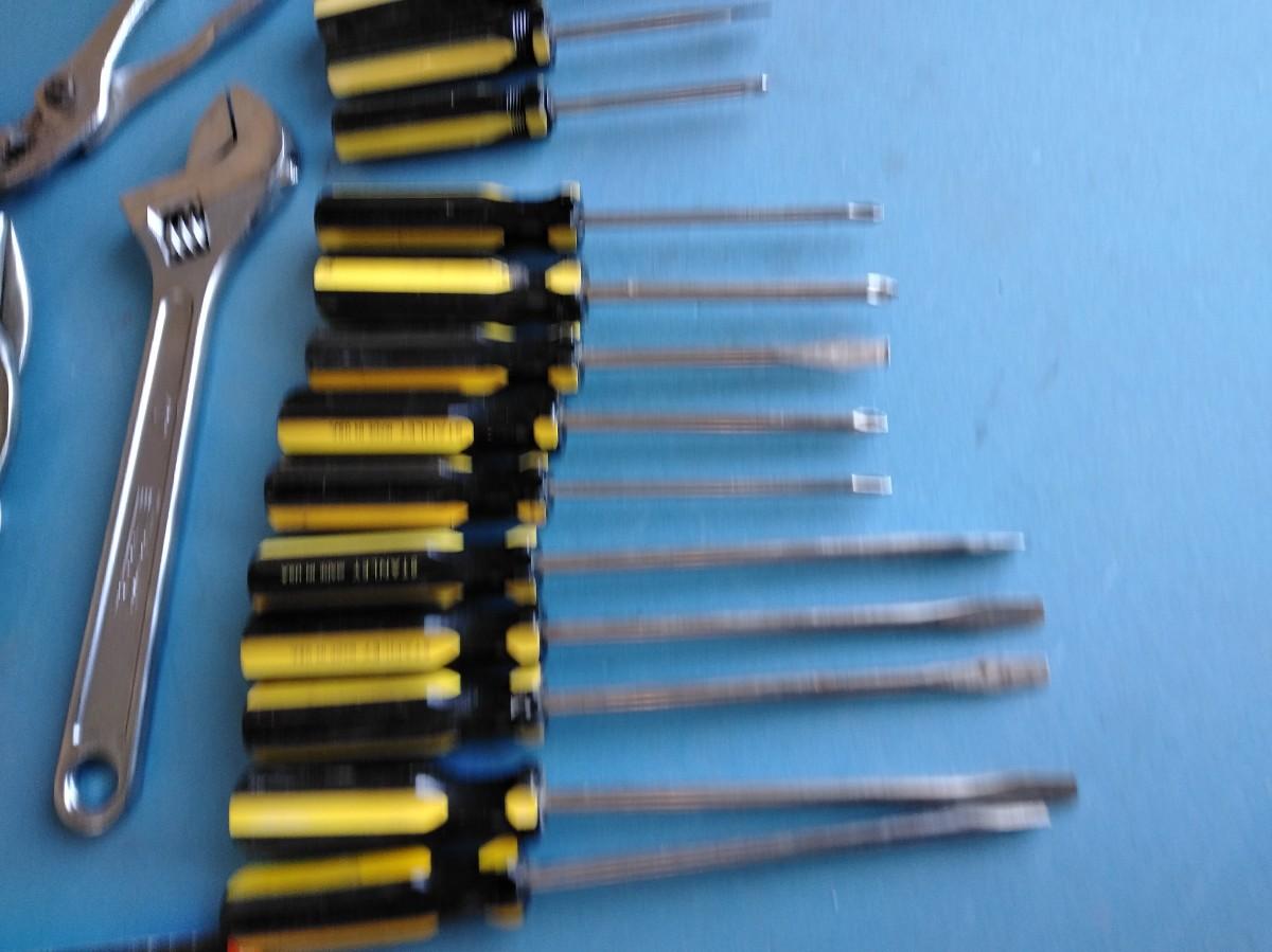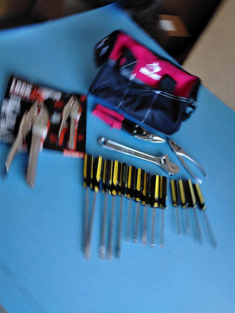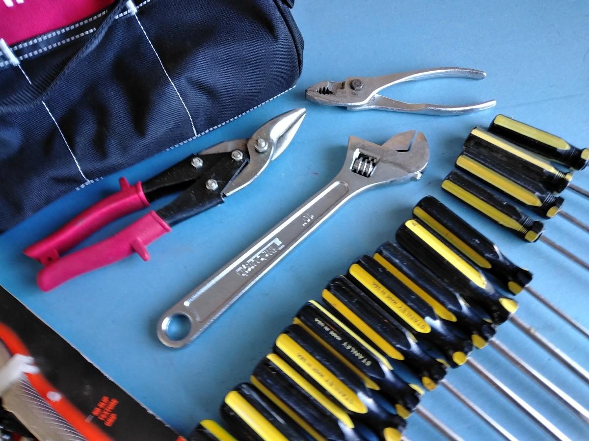 HUSKY TOOLBAG WITH AN ASSORTMENT OF HANDTOOLS.