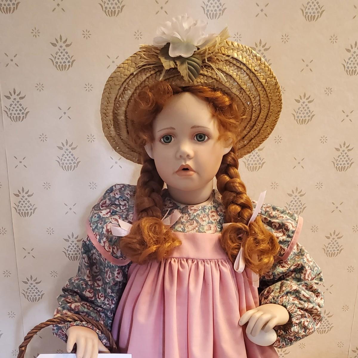 Doll Named "Kristy" By Phyllis Seidl Doll With Pink Floral Dress with Hat
