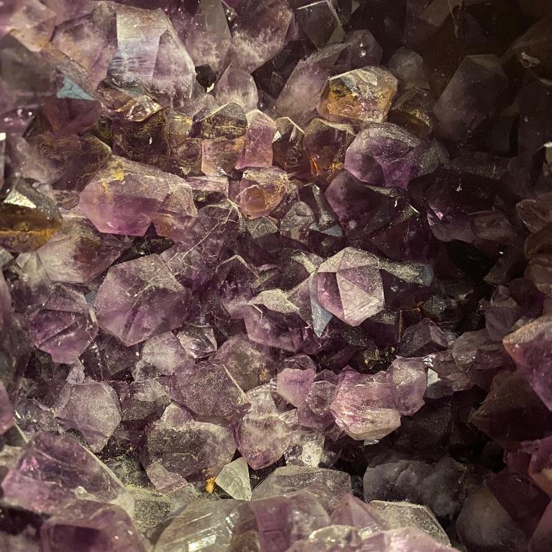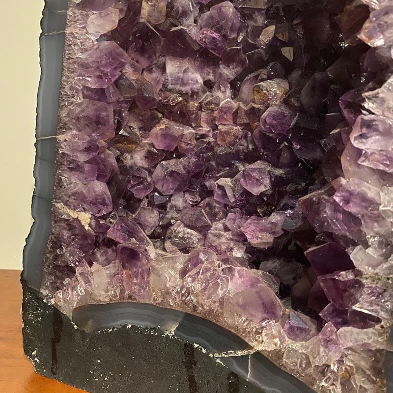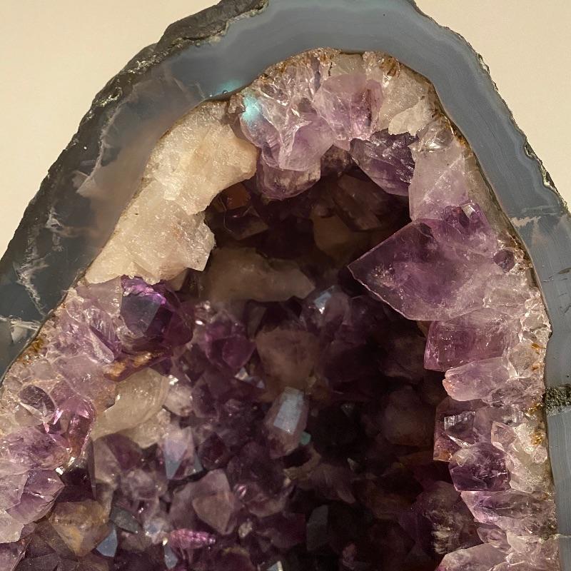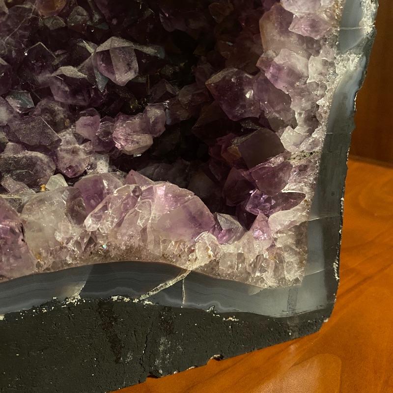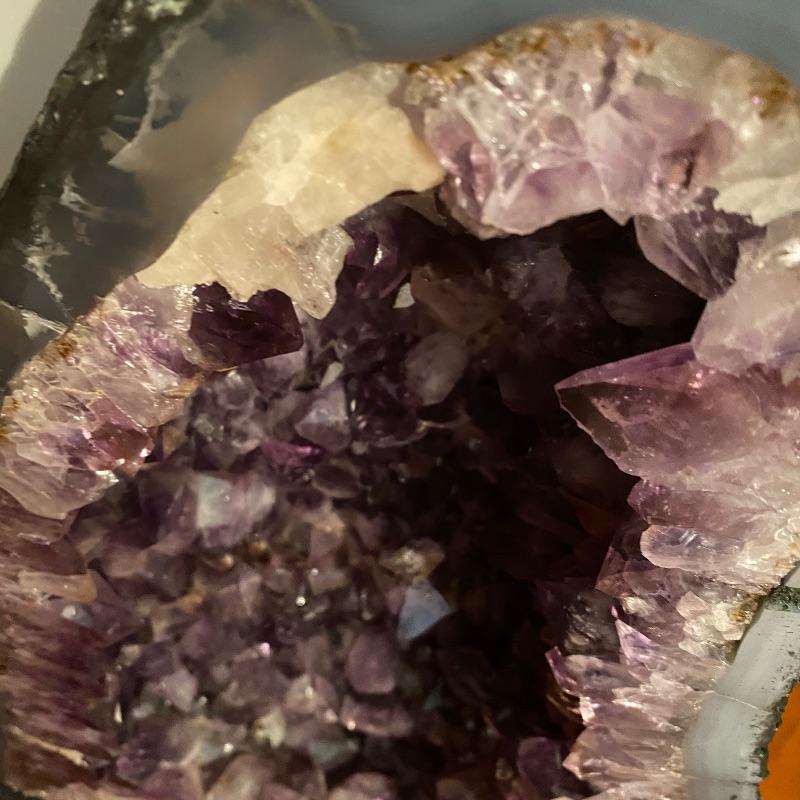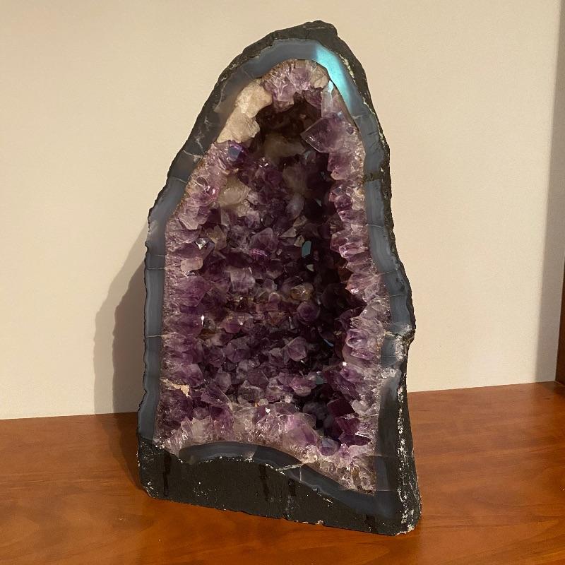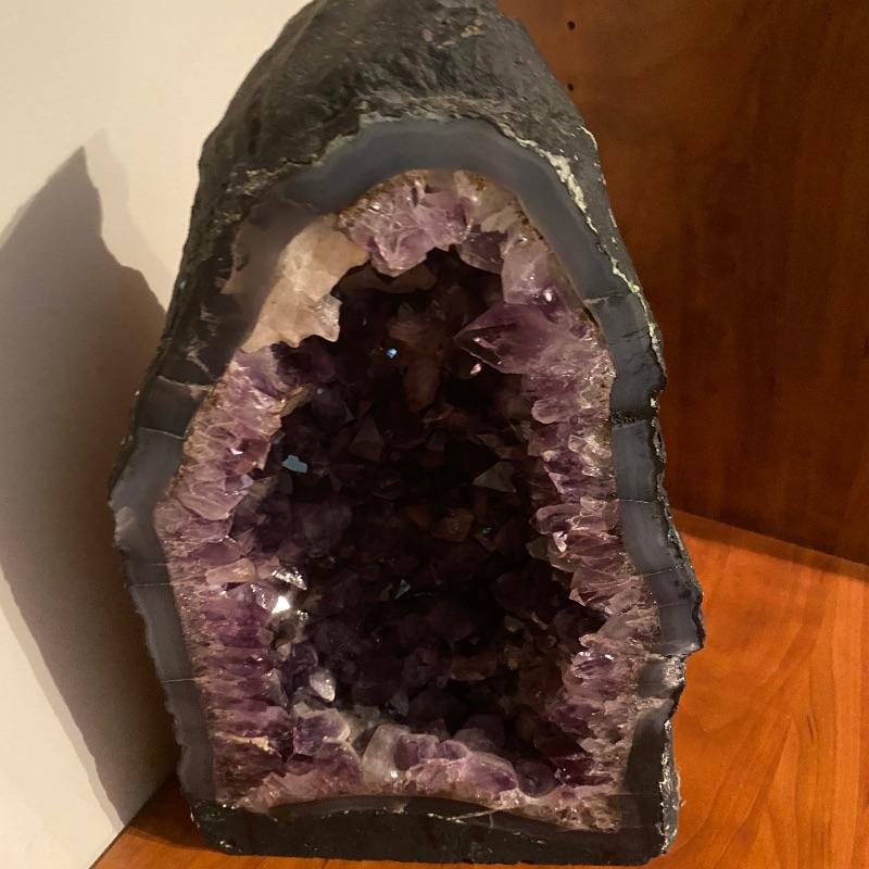 This beauty measures 9” x 5” x 15”. It has nice purple shades with large crystals inside. See photos for all the details! Shipping available but would be costly as this is very heavy!!