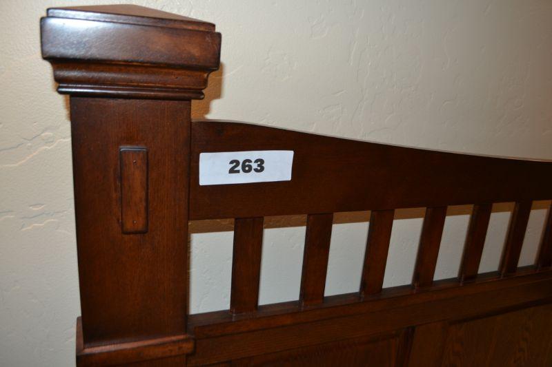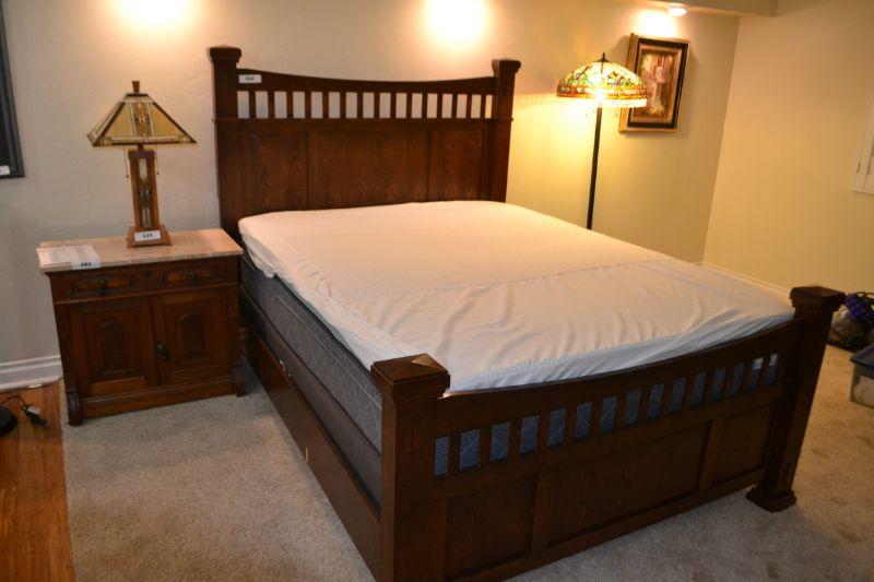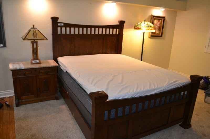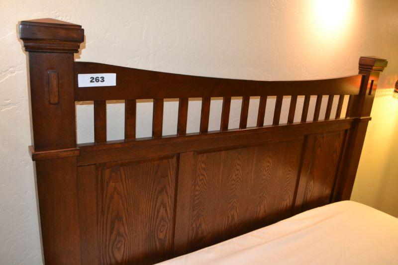 LOT 263. MISSION STYLE QUEEN SIZE BED WITH NICE MATTRESS