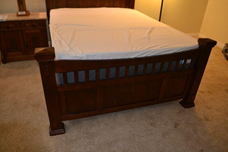 MISSION STYLE QUEEN SIZE BED WITH NICE MATTRESS
