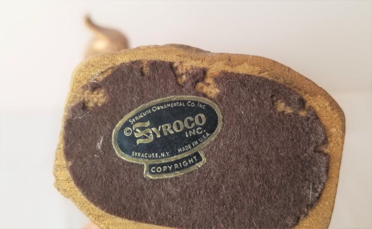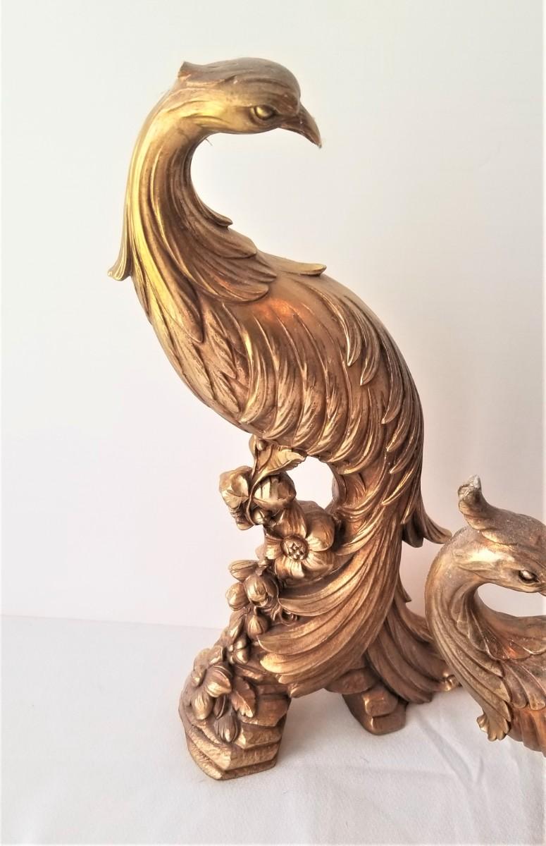 Mid-Century decorative pair of Syrocco birds - burnished gold color - good vintage condition. 13.5" tall, 12" long. 1960's.