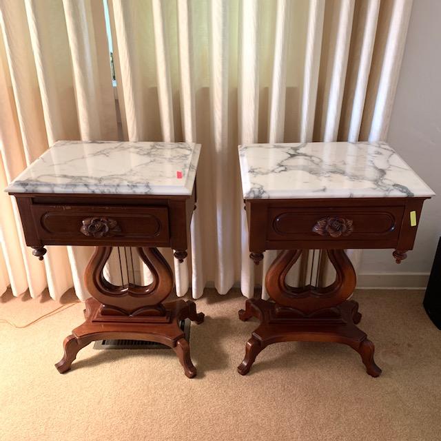 LOT 263 Pair Victorian Rosewood Tables Carrera Marble Tops Reproductions
