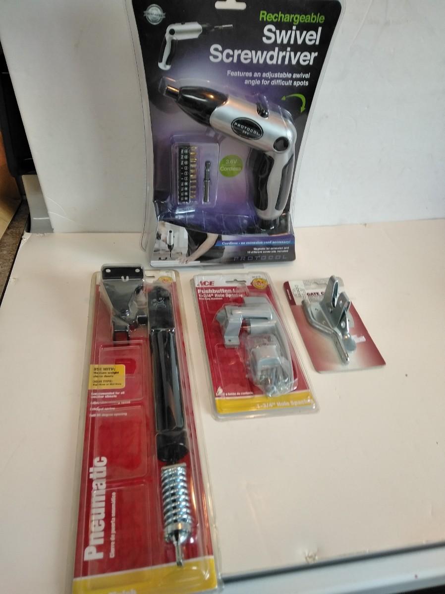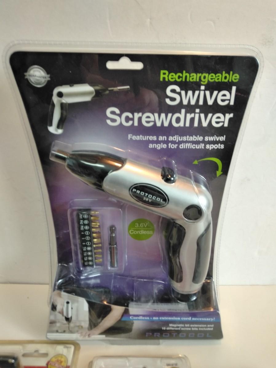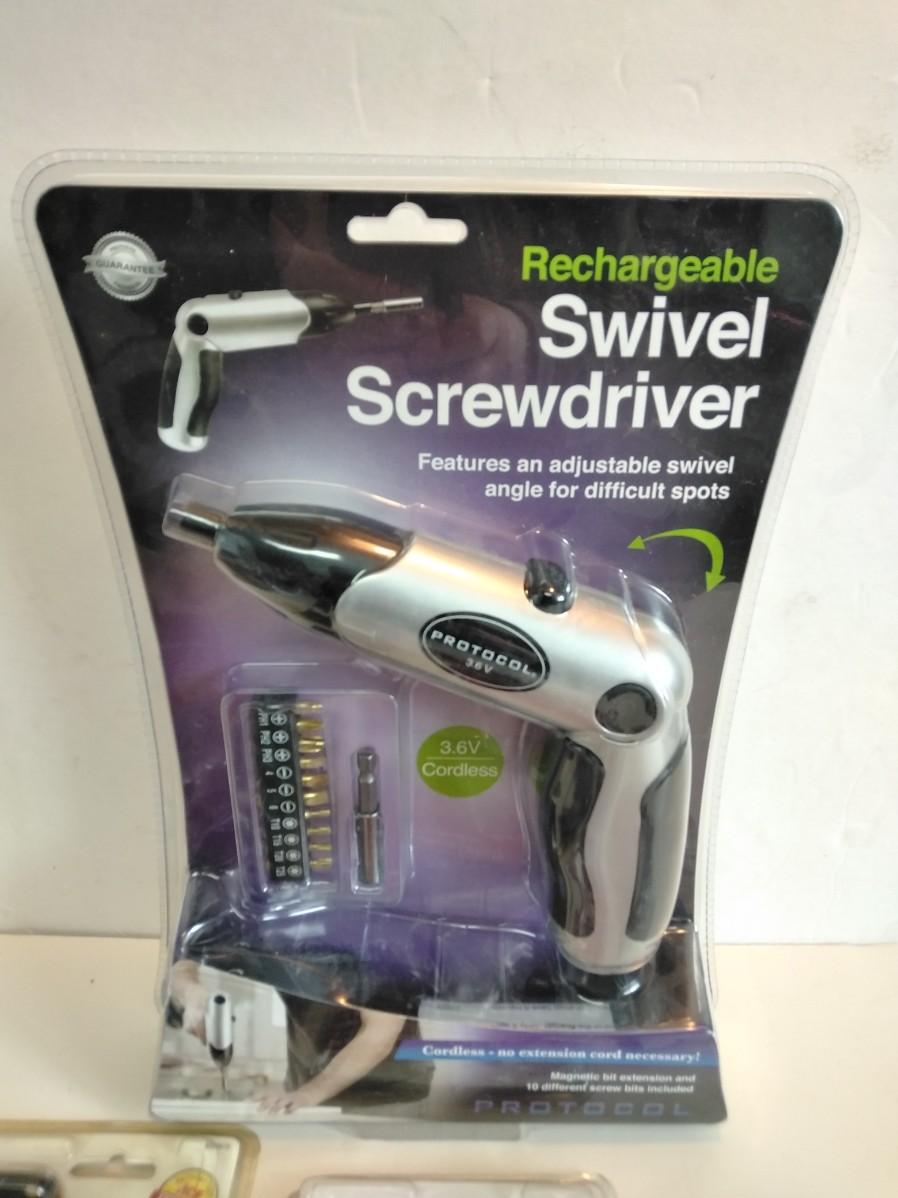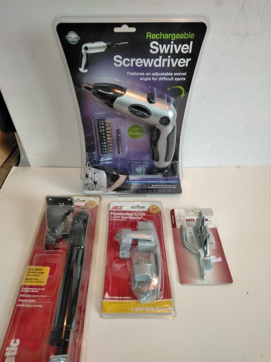 RECHARGABLE SWIVEL SCREWDRIVER WITH SCREEN DOOR REPAIR ITEMS