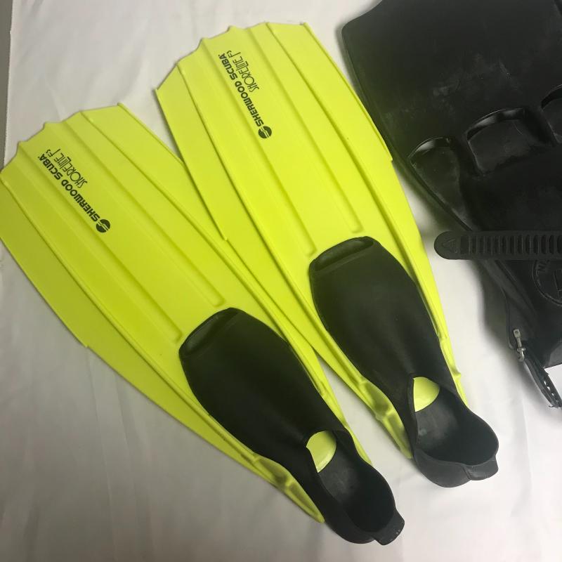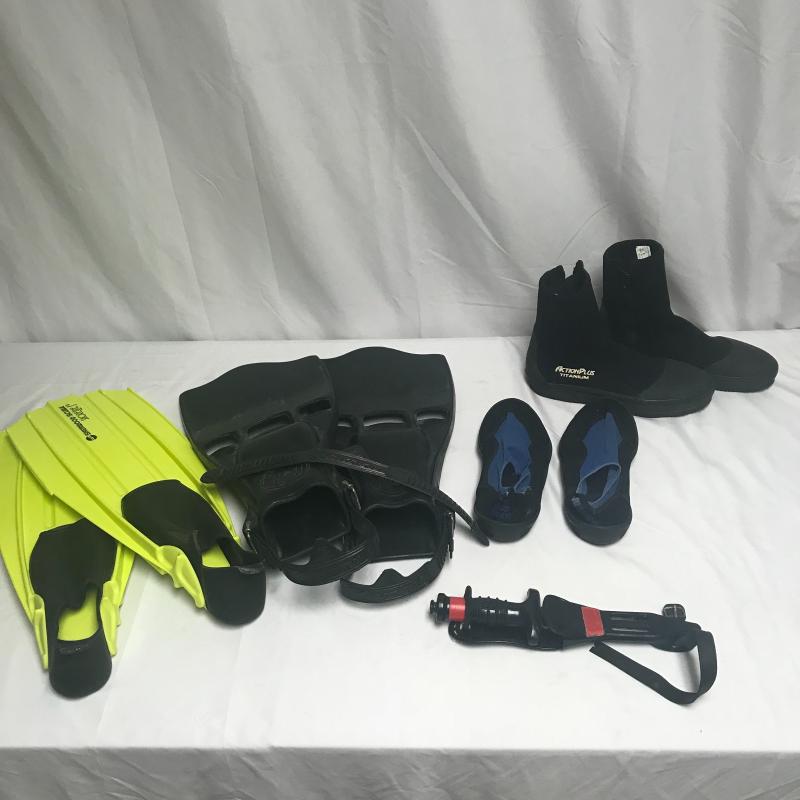 Two pairs of fins, scuba pro knife, two pairs of water shoes. All size 9. Local pick up only.