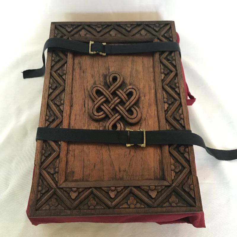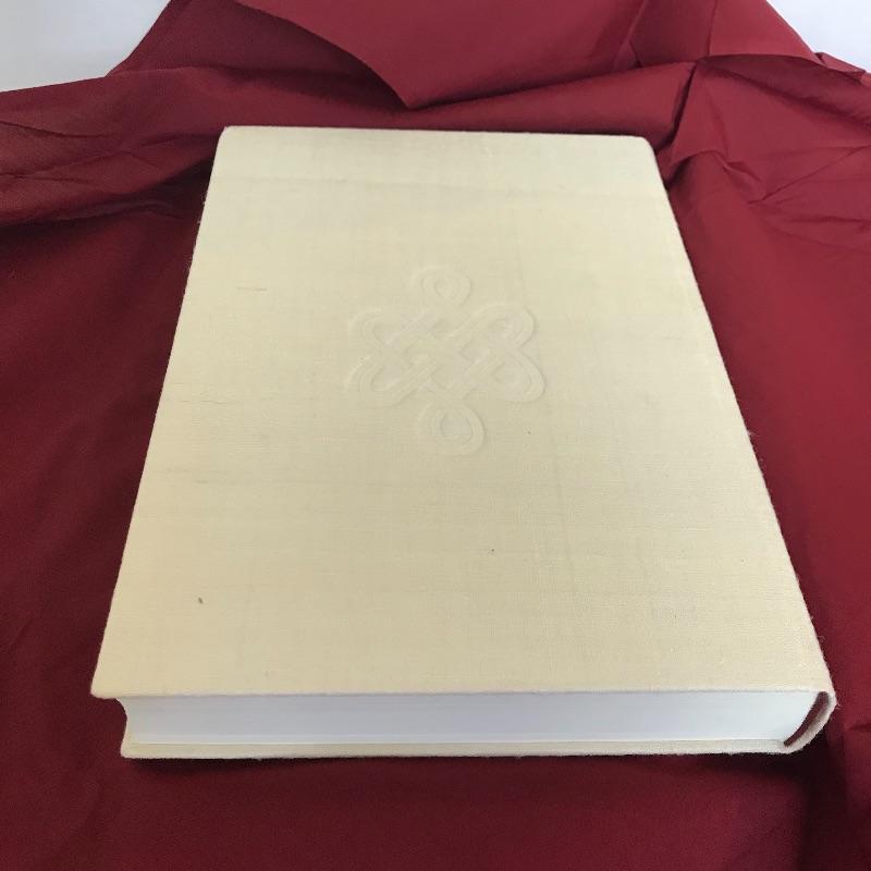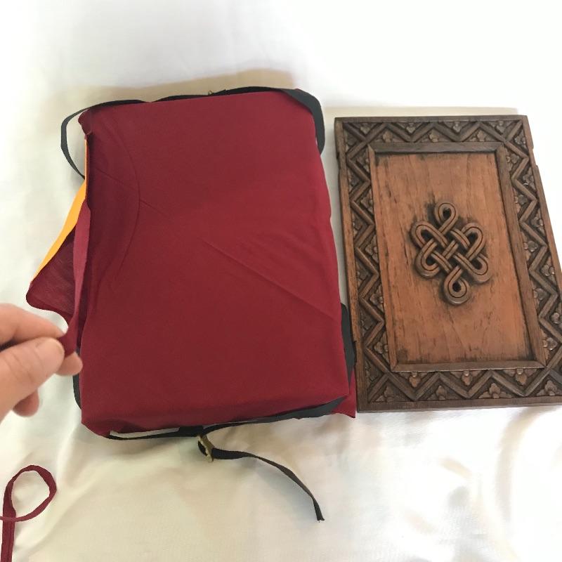Seven years in Tibet with introduction by the Dalai Lama by Heinrich harrer. This gorgeous book has a cotton Pi-Chu sleeve and a carved wooden front cover with rear cover as well, possibly magnolia. Shipping available.