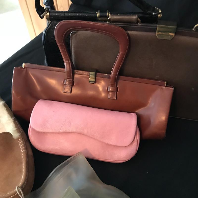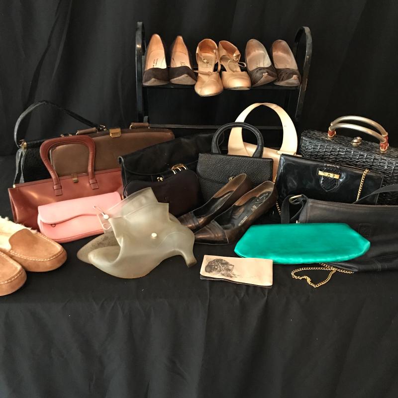 Lot includes assorted handbags, clothes, ladies shoes, vintage high heal covers, a shoe rack, and a pair of Ugg slippers. Sizes not clear but appear to be a women’s 9 or 10. See pics. No shipping available. Local pickup only in Asheville, NC.