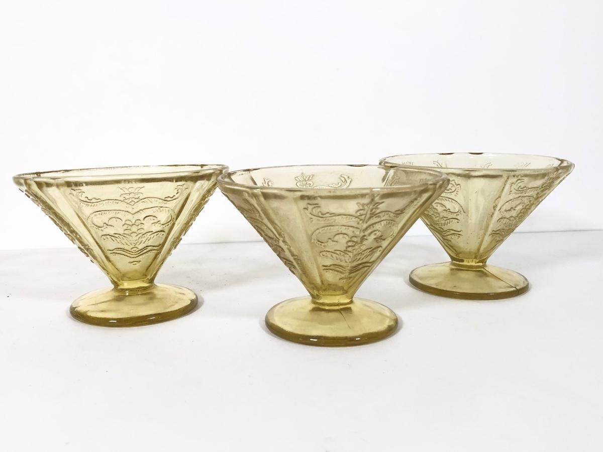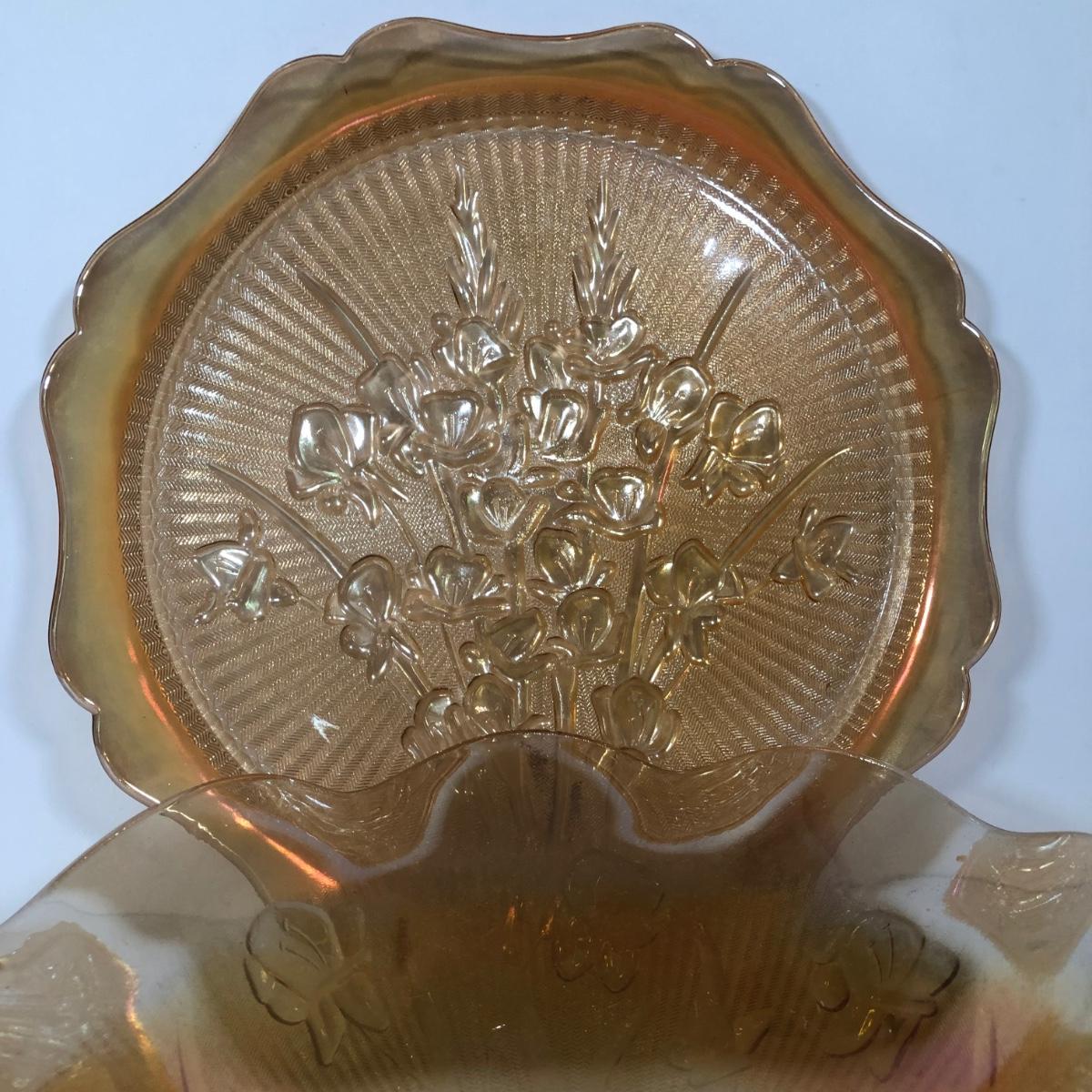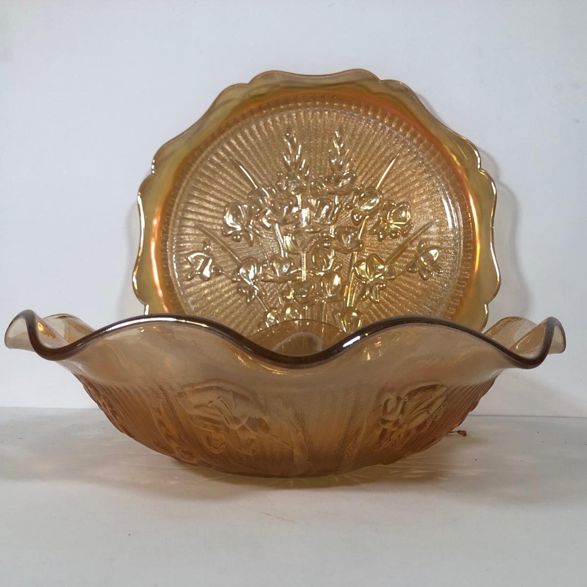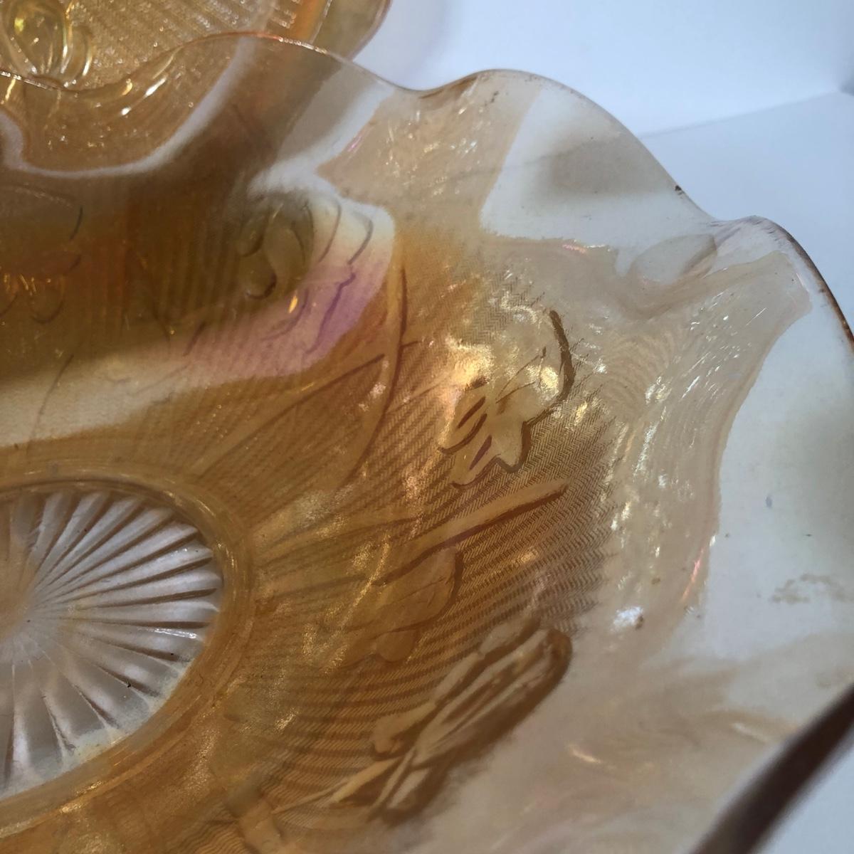 LOT 263L: Vintage Glass - Carnival Marigold Bowl & Plate, Tinted Tree Glasses, Frosted Bowls & Vaseline Cocktail Glasses