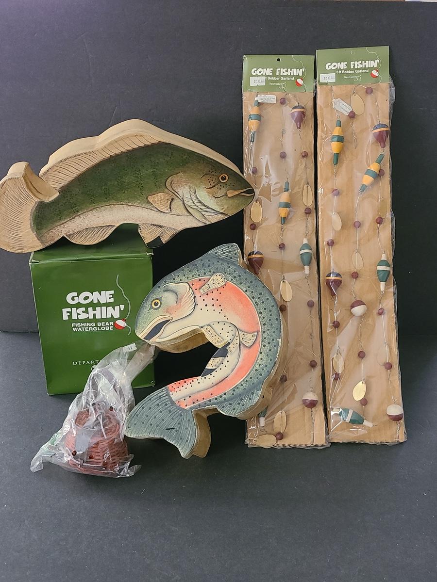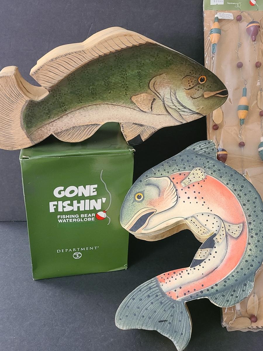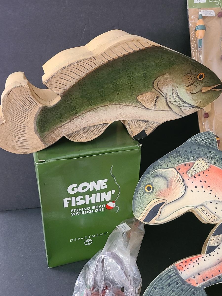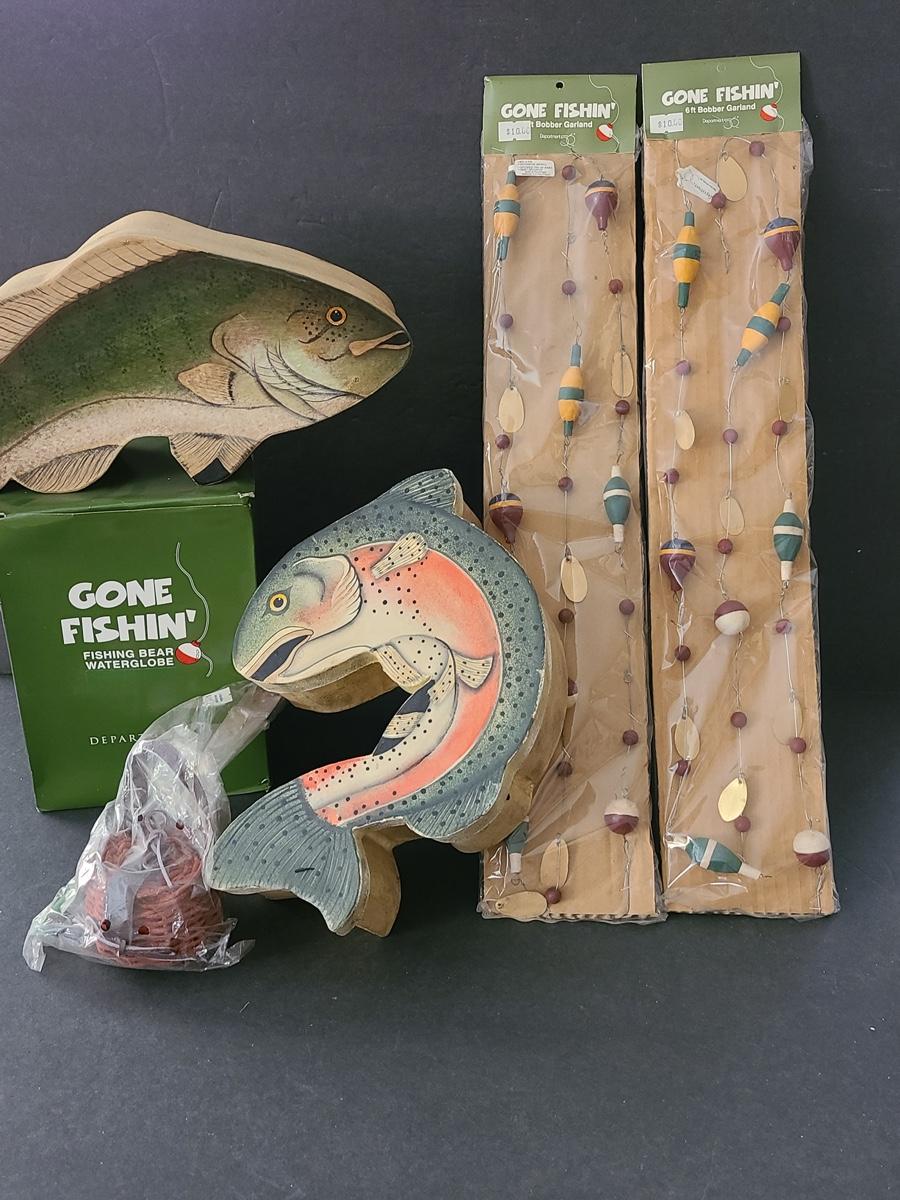 Lot 263X: Dept 56: Fishing Boxes, Snowglobe & more