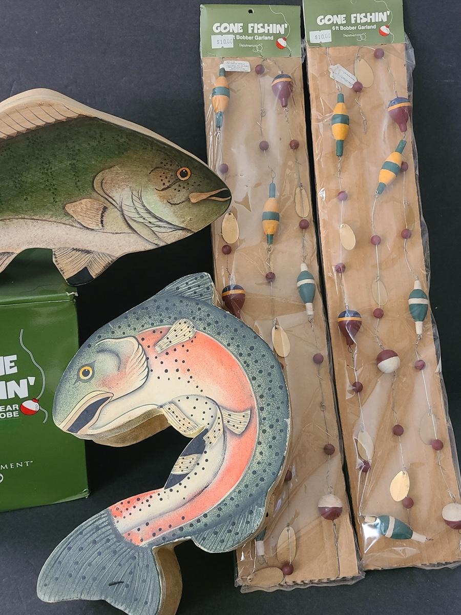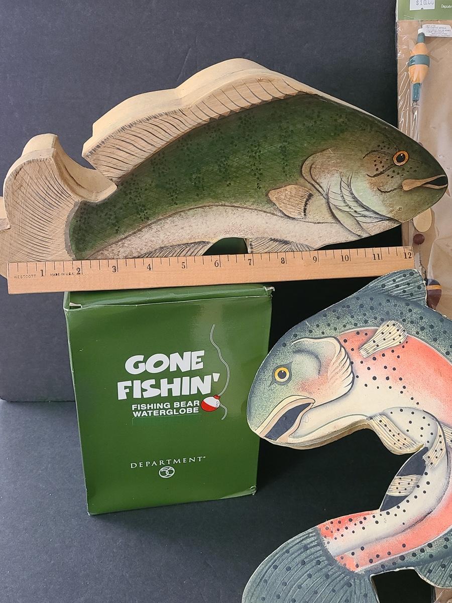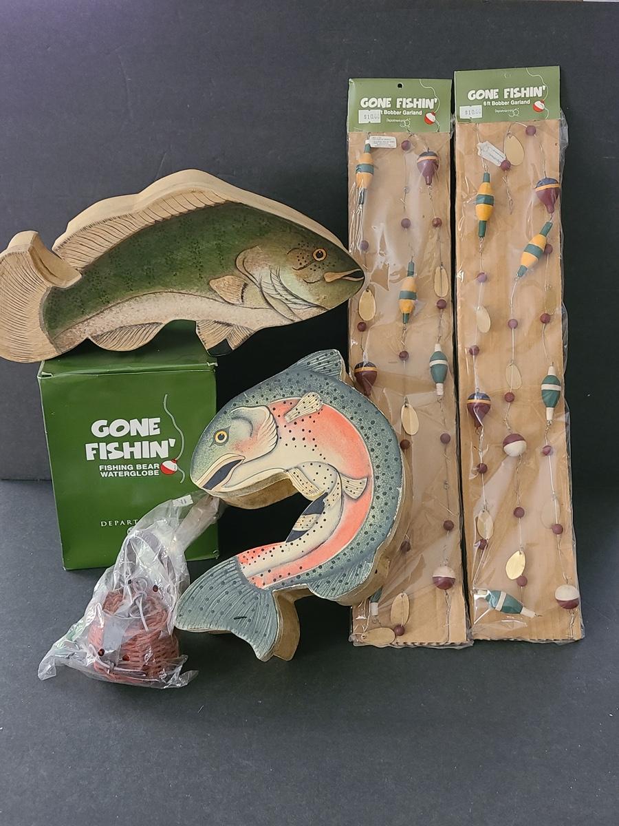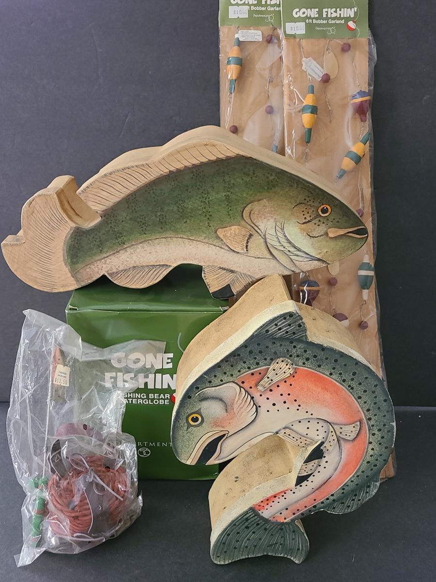 Lot 263X: Dept 56: Fishing Boxes, Snowglobe & more