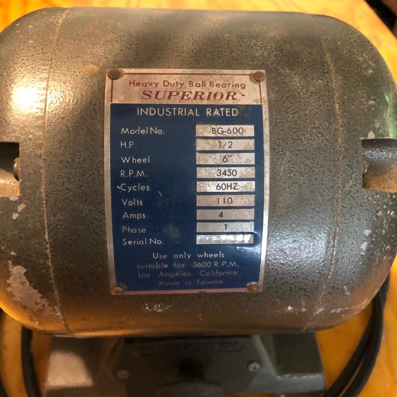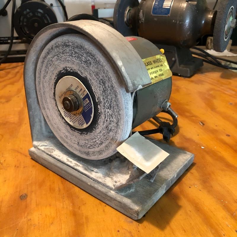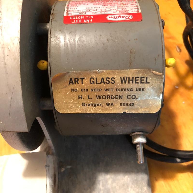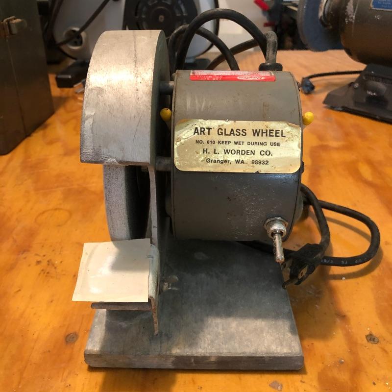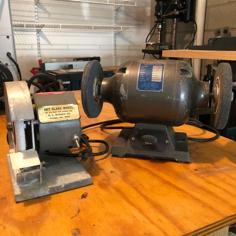 Includes one Dayton Art Glass Wheel grinder and one heavy duty ball bearing Superior grinder. The first grinder has one cracked wheel. Both grinders work. Large grinder is 14"W x 9"H x 7"D. The smaller one is 8"D x 7.5"H x 5.5"W.