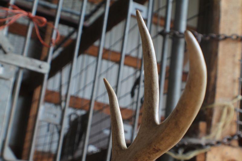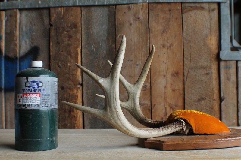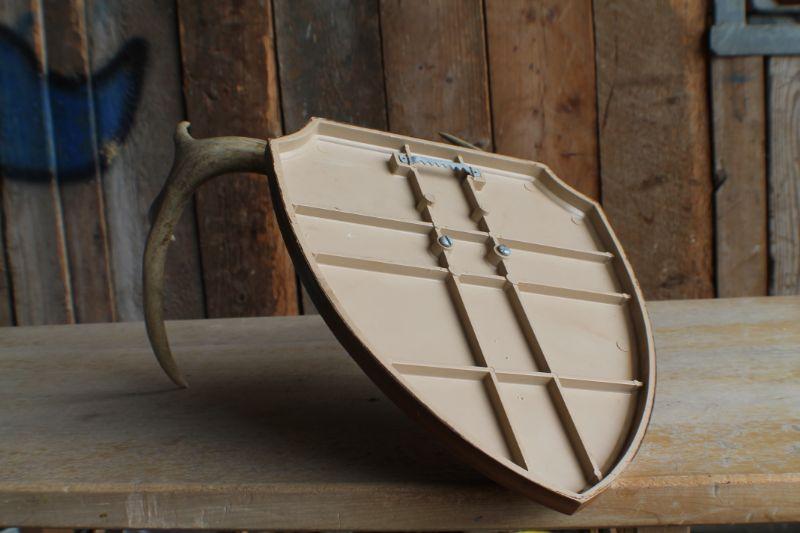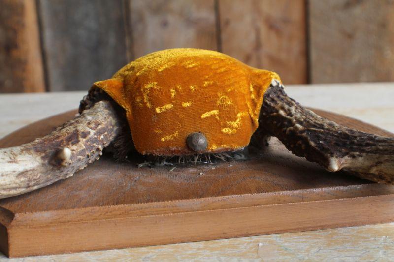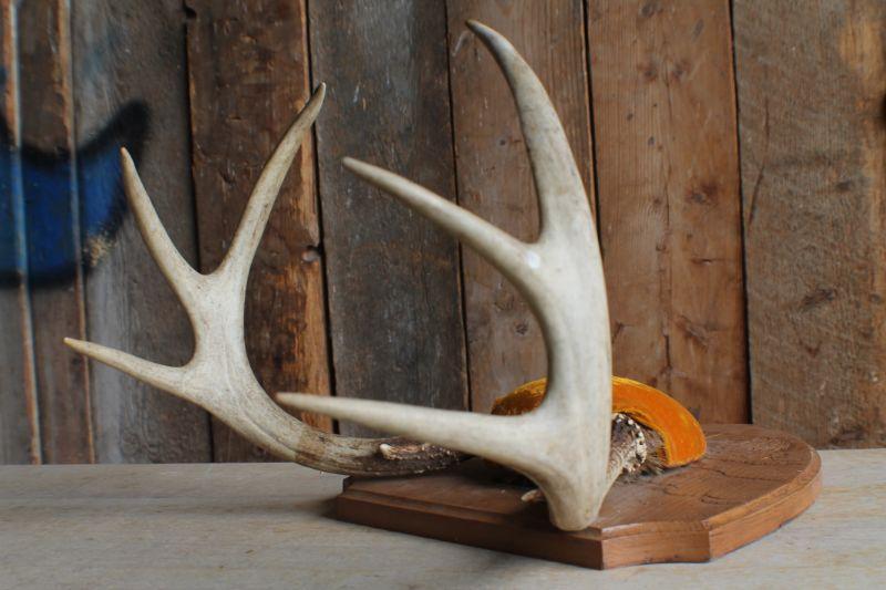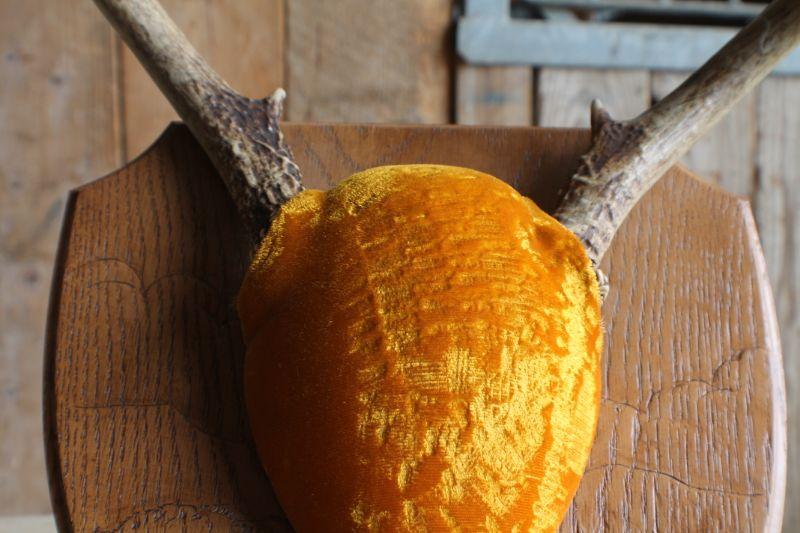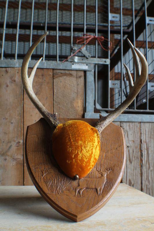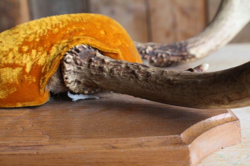 Lot #264: Vintage Set of Mounted Antlers w/ Orange Velvet Skull Cover