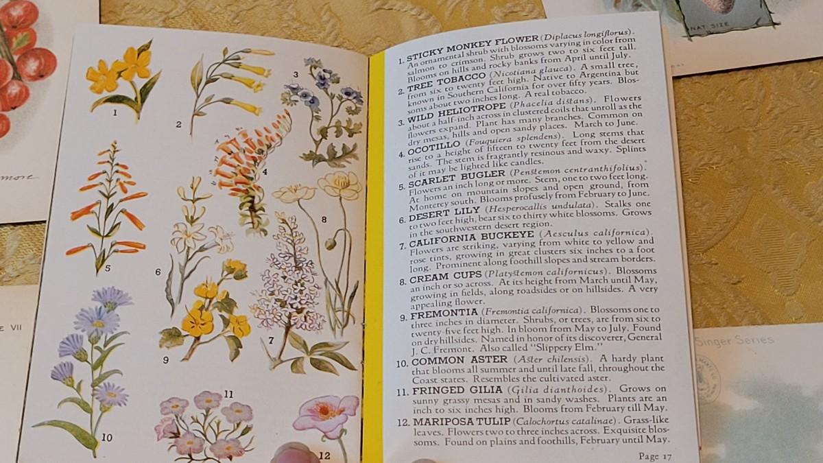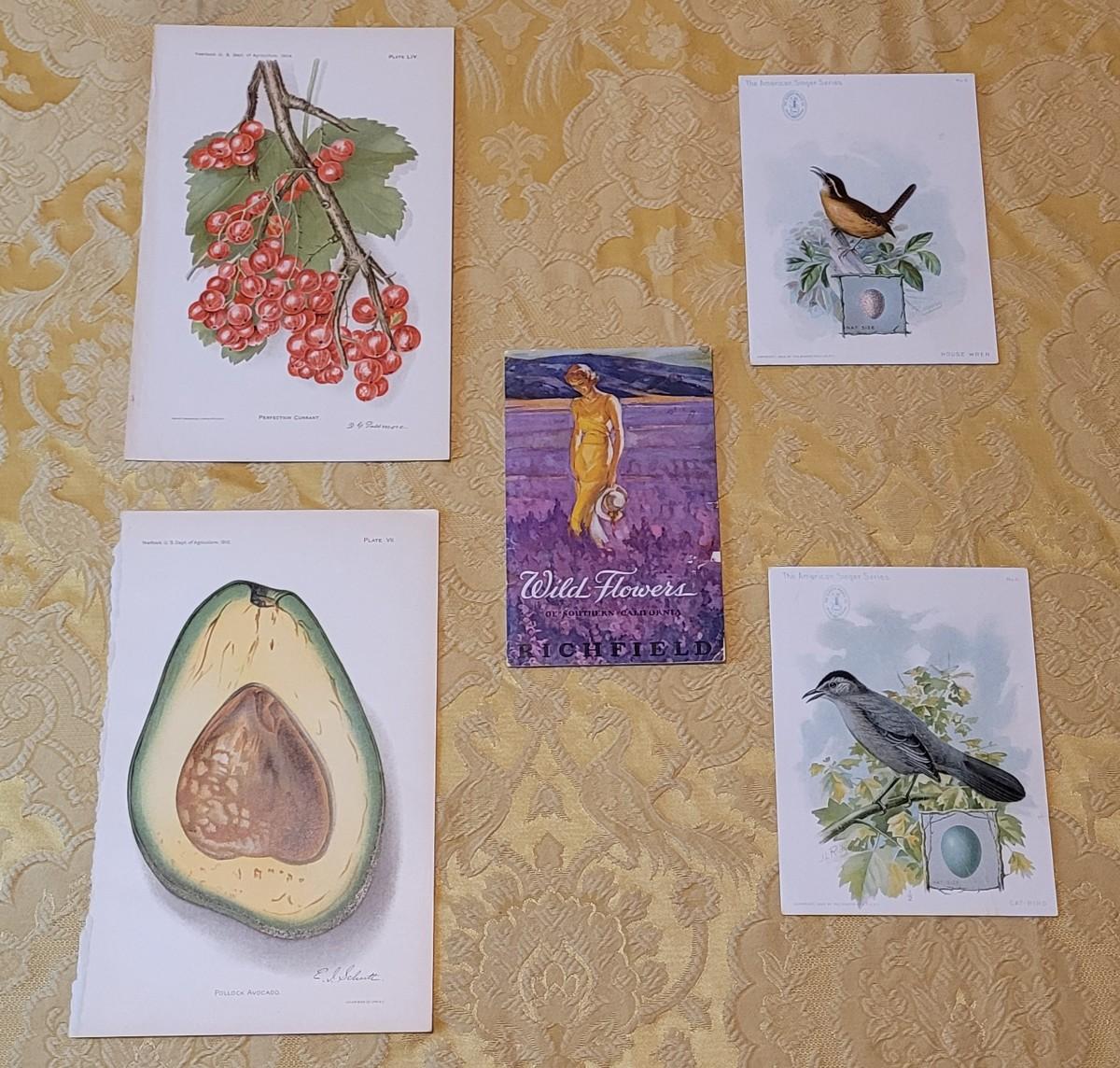 Lot 264: Antique Plate Prints, Singer Bird Cards and Wildflowers of California Mini Booklet