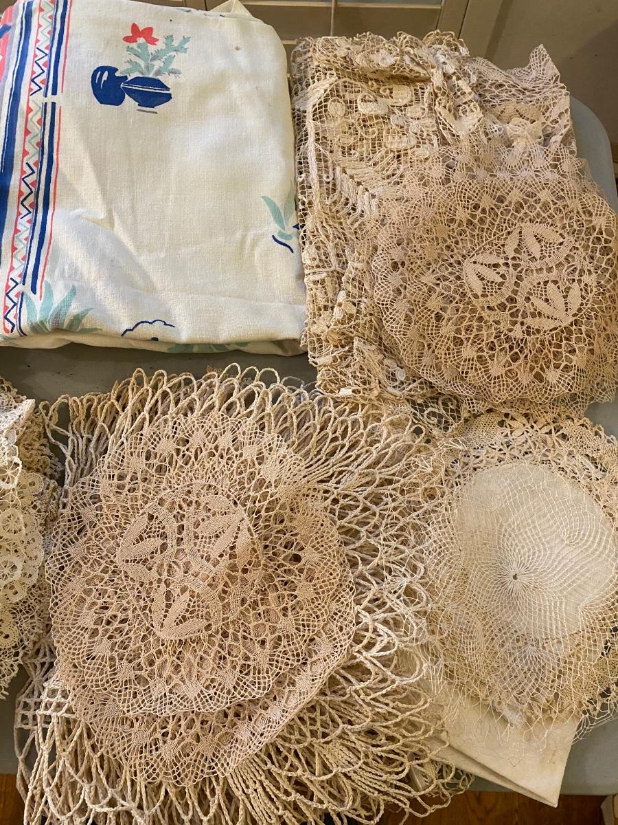 Linens and crocheted doilies and more