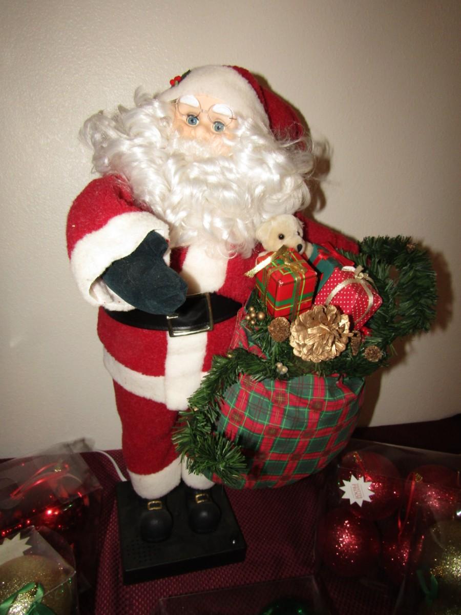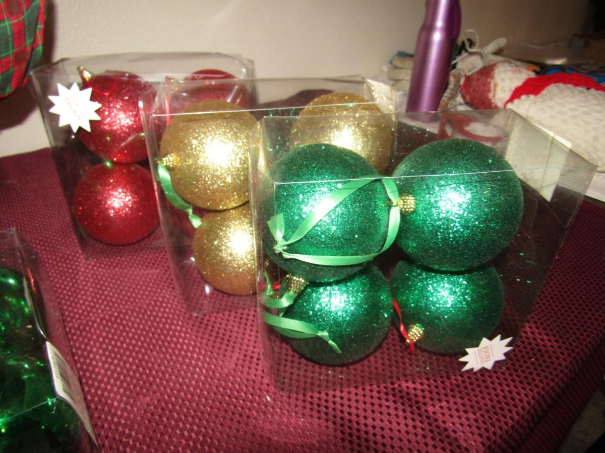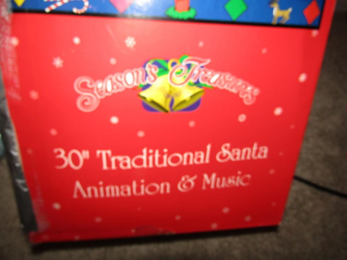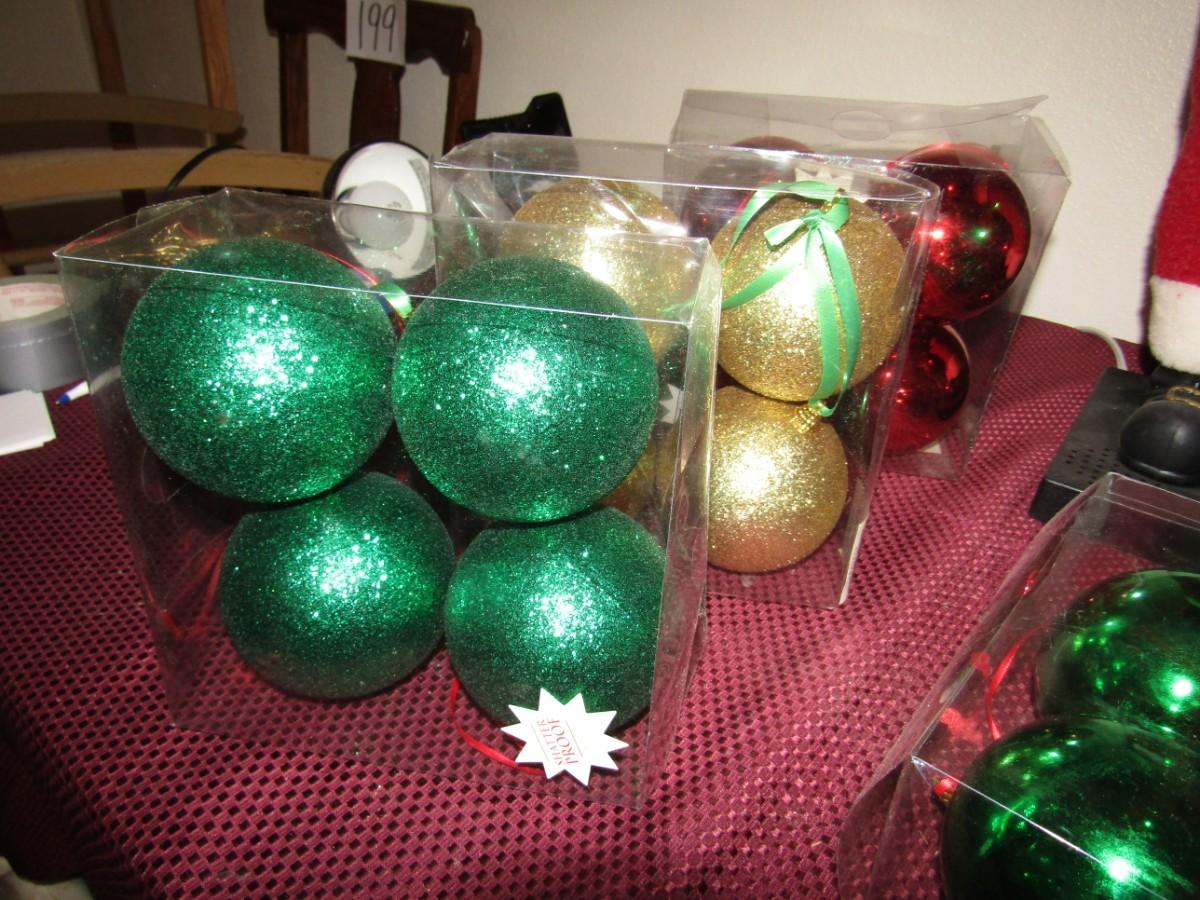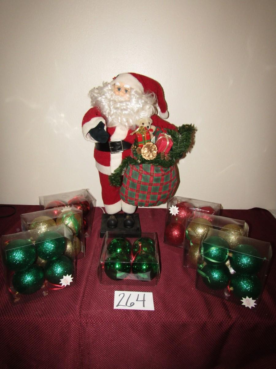 CHRISTMAS BULBS IN PACKAGES. DIFFERENT COLORS AND A 30" MUSICAL PLAYING SANTA CLAUS WITH ORIGINAL BOX.