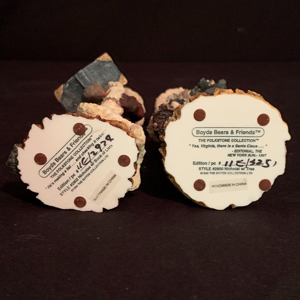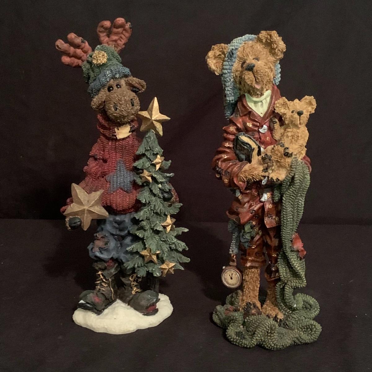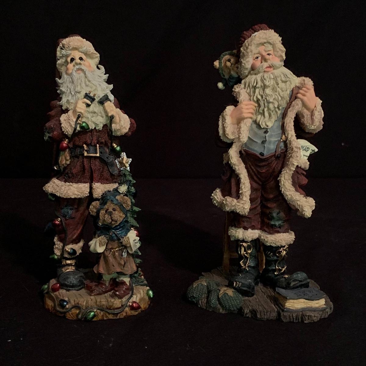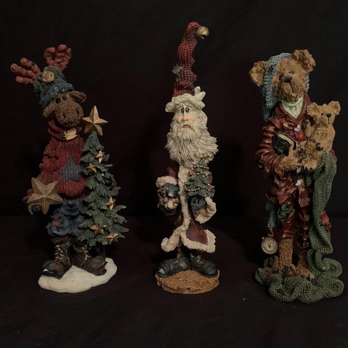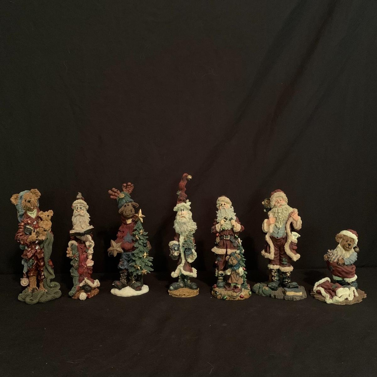 This lot contains seven Boyd’s Bears & Friends Christmas themed figurines. Six are from the Folkstone Collection and one is from the Bearstone Collection. There are four Santas, two bears, and one moose. Once figurine has a broken tip of its Santa hat that could easily be glued back on. The tallest figurine stands at about 8.5” and the smallest is 4” tall. One certificate of authenticity is included from the Folkstone Collection. Shipping available.