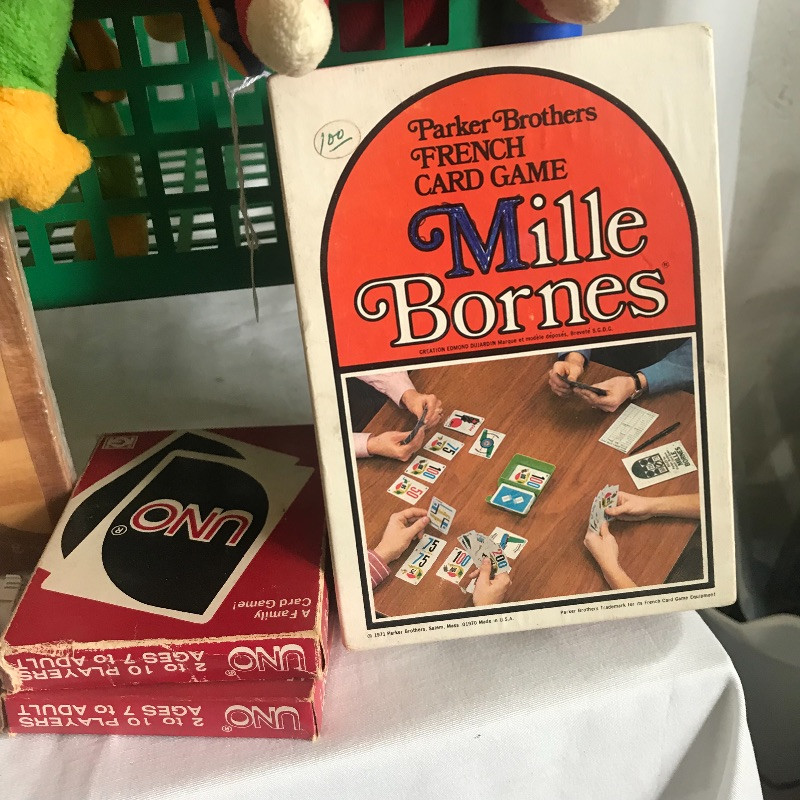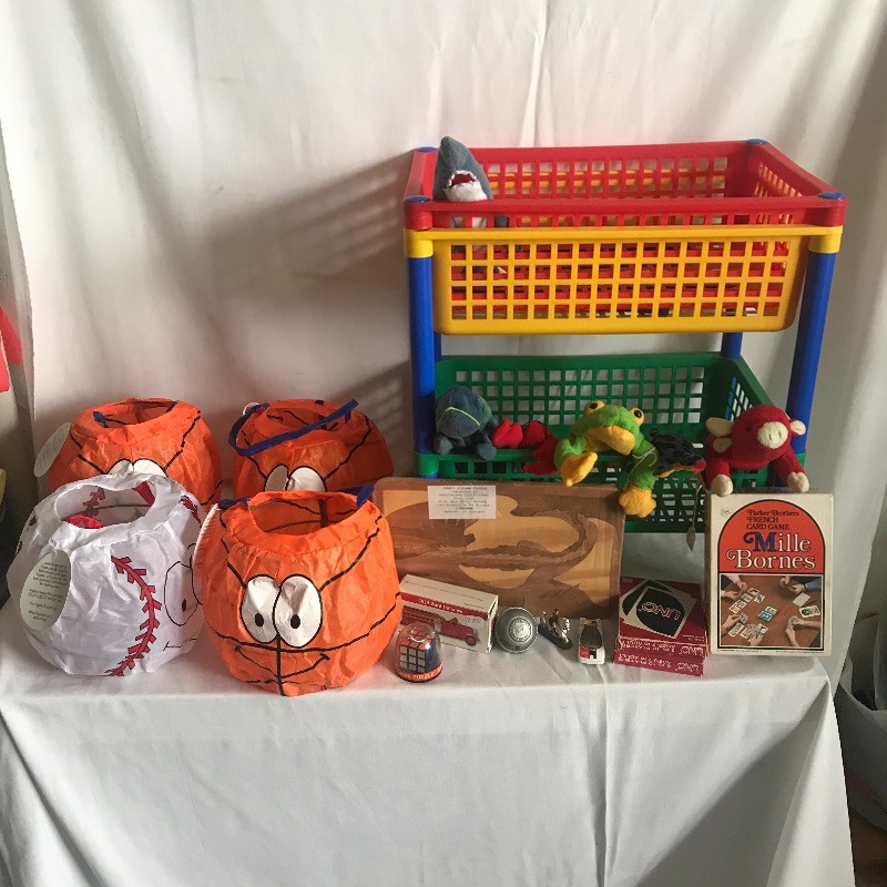 Collection includes, Beanie babies, rubix cube, wooden puzzle, a vintage metal spinning top, matchbox, and more. Plastic stacking crate is missing a leg but still does the job. Local