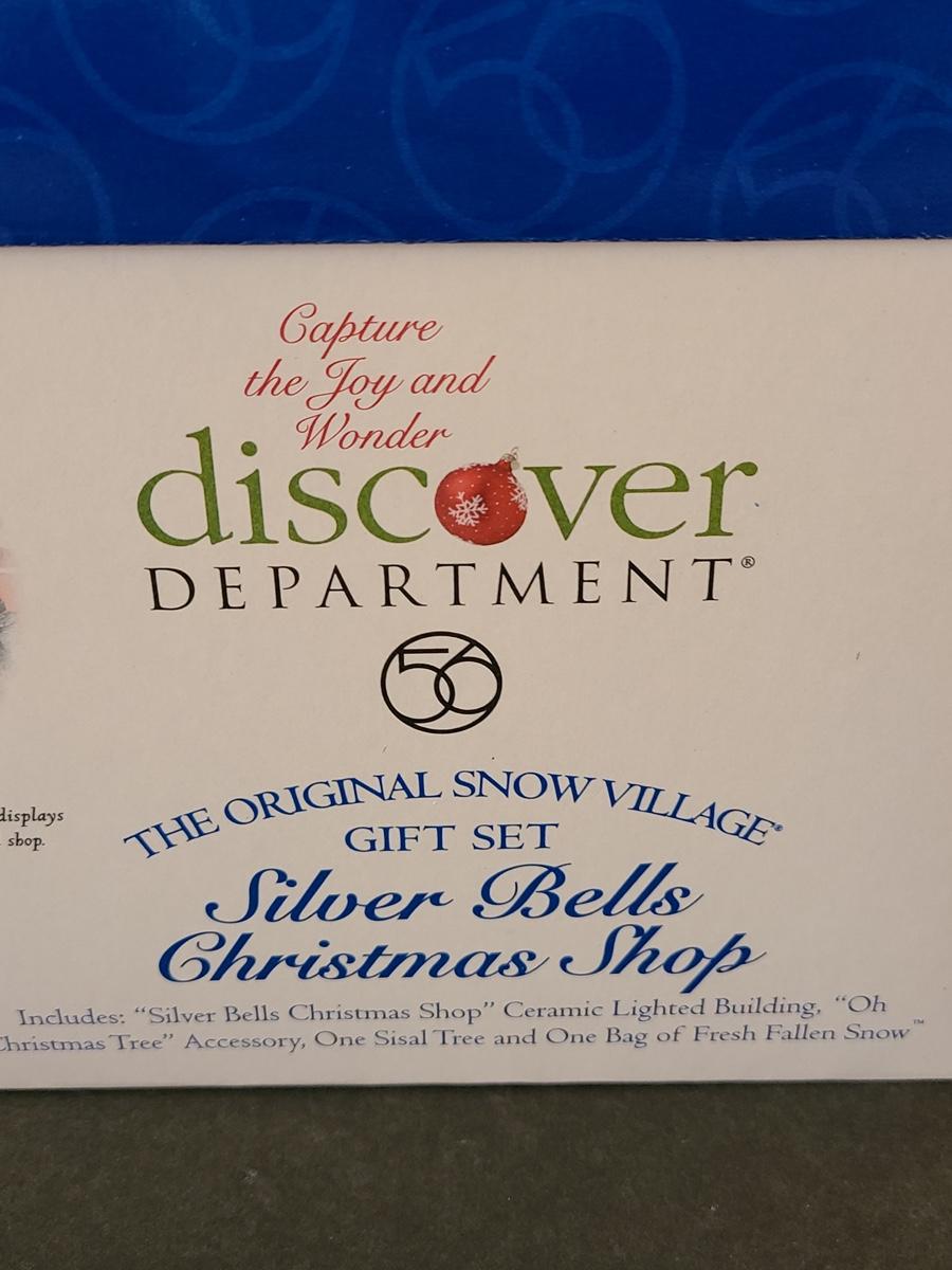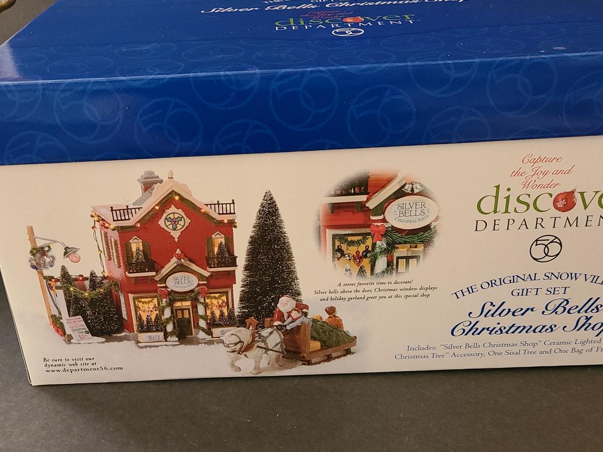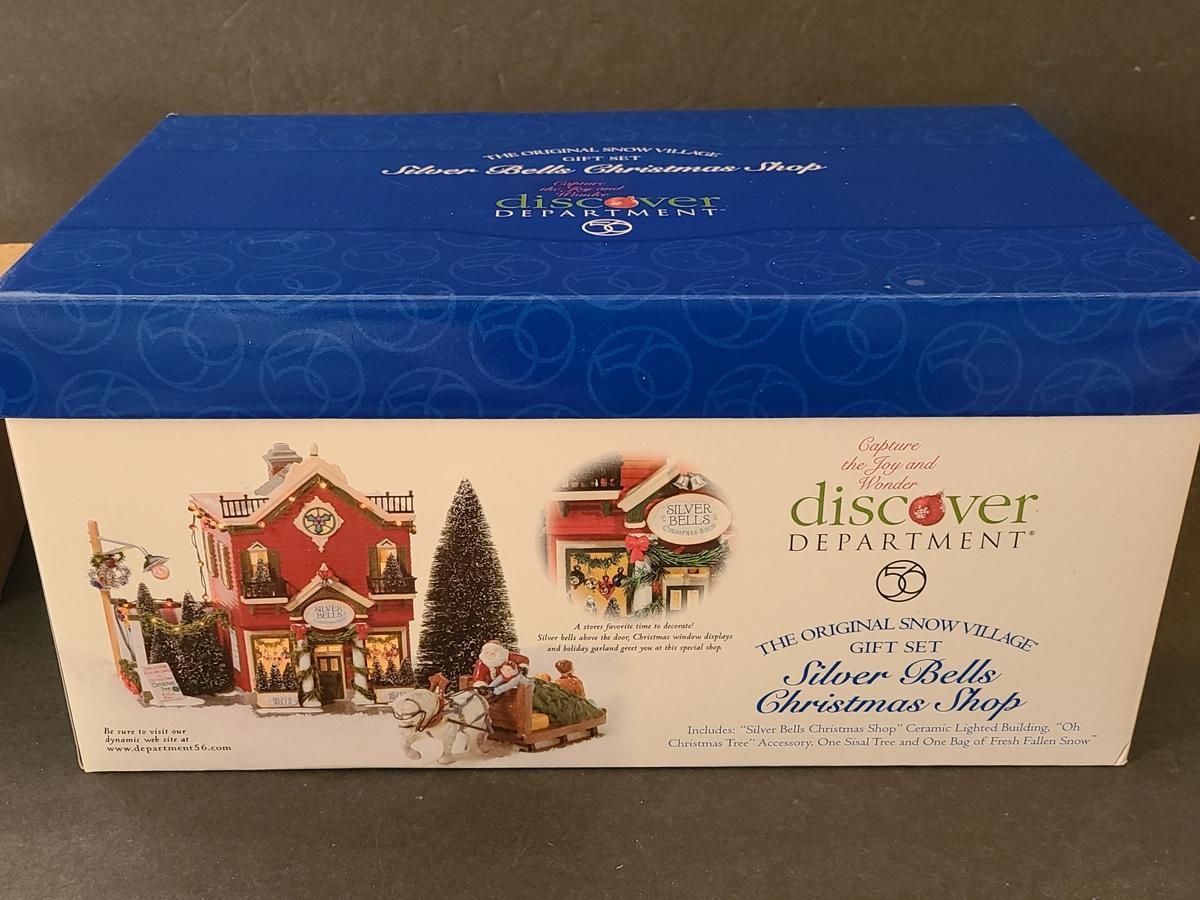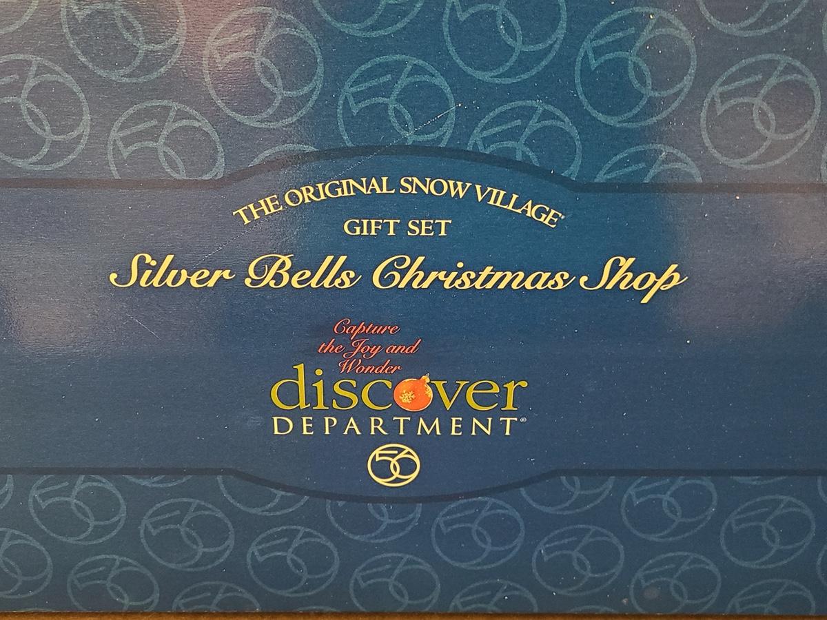 Lot 264: Dept 56: Original Snow Village Silver Bells Christmas Shop Gift Set