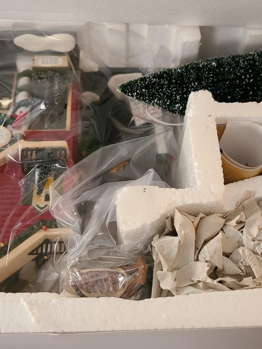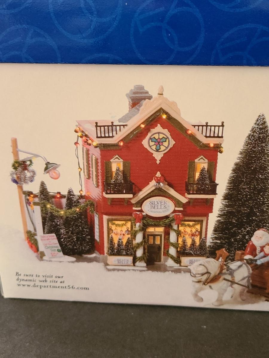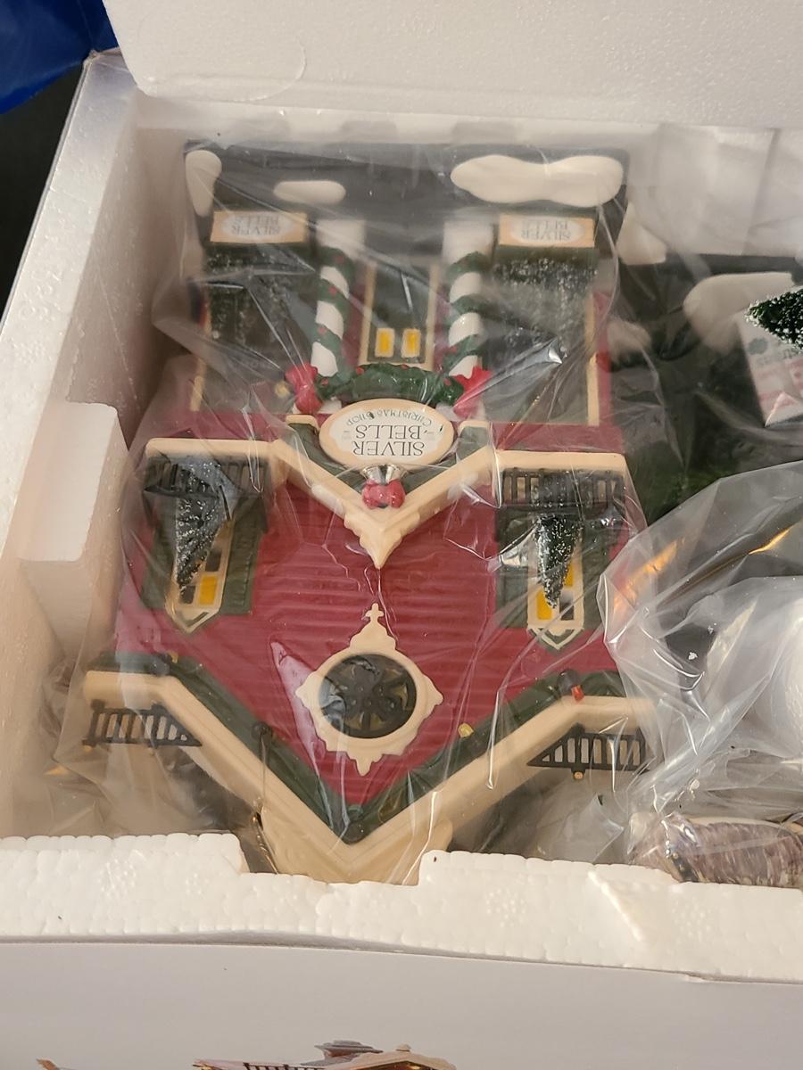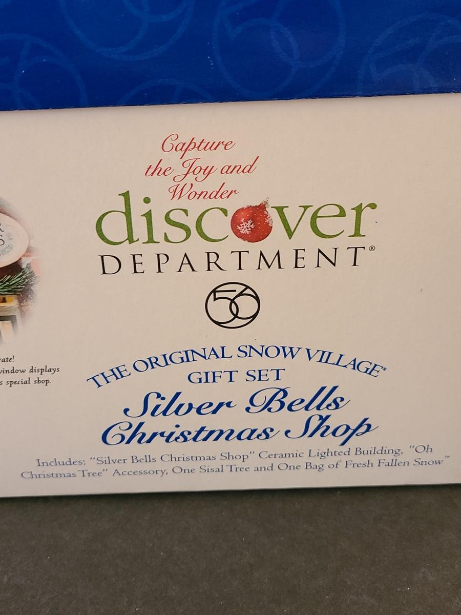 Lot 264: Dept 56: Original Snow Village Silver Bells Christmas Shop Gift Set