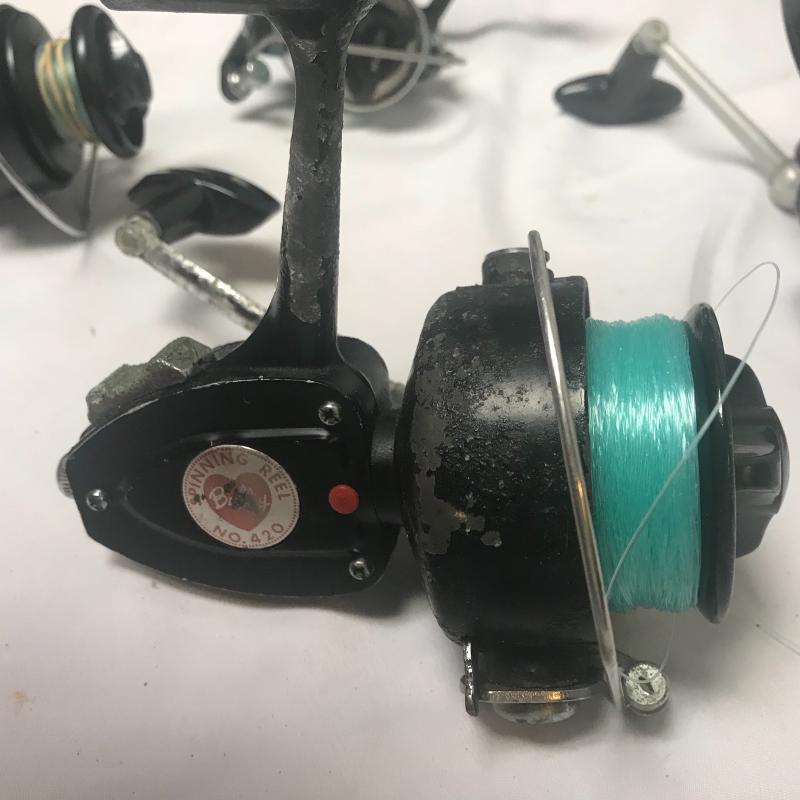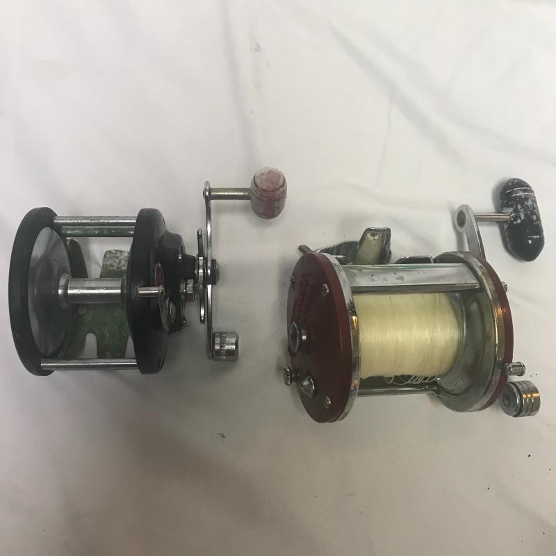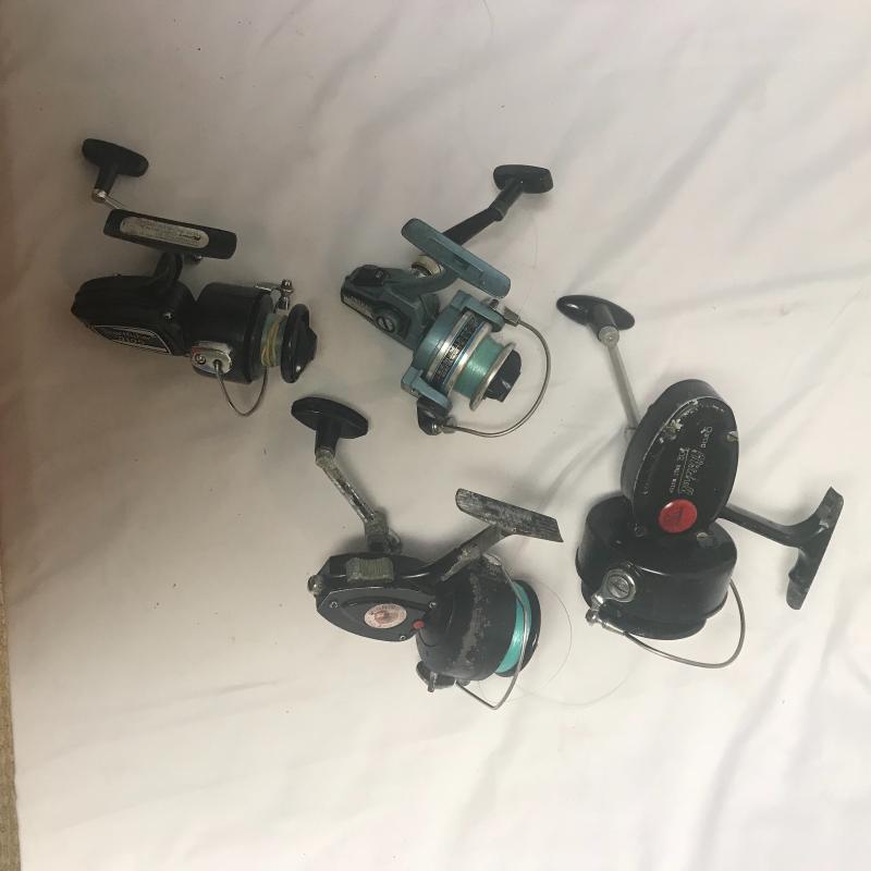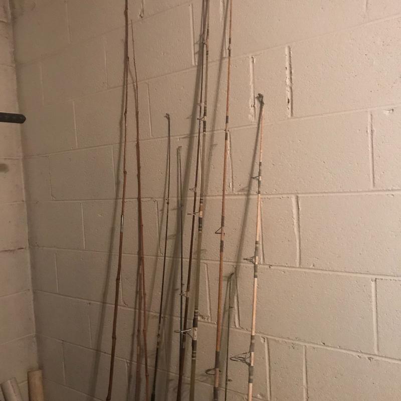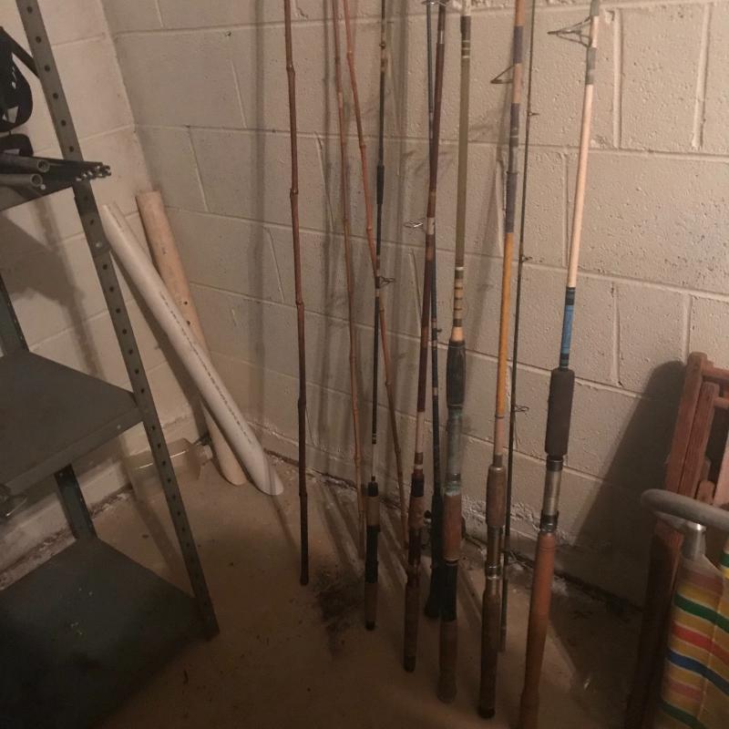 From Mountain Streams to the great open ocean this lot is a good set for the true angler. It includes two vintage Gaffs, like new fishing vest, weighted live bait bucket and net, 8 reels of all styles and brands like Penn, sport fisher, Berkeley and more. Some are worn and need some love from saltwater damage. 3 cane poles, 6 more with one random tip piece. Three pvc beach rod holders and very little tackle and a box. Local pick up only.