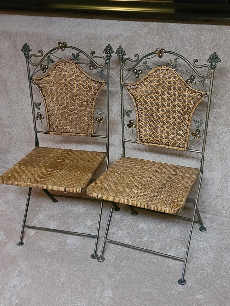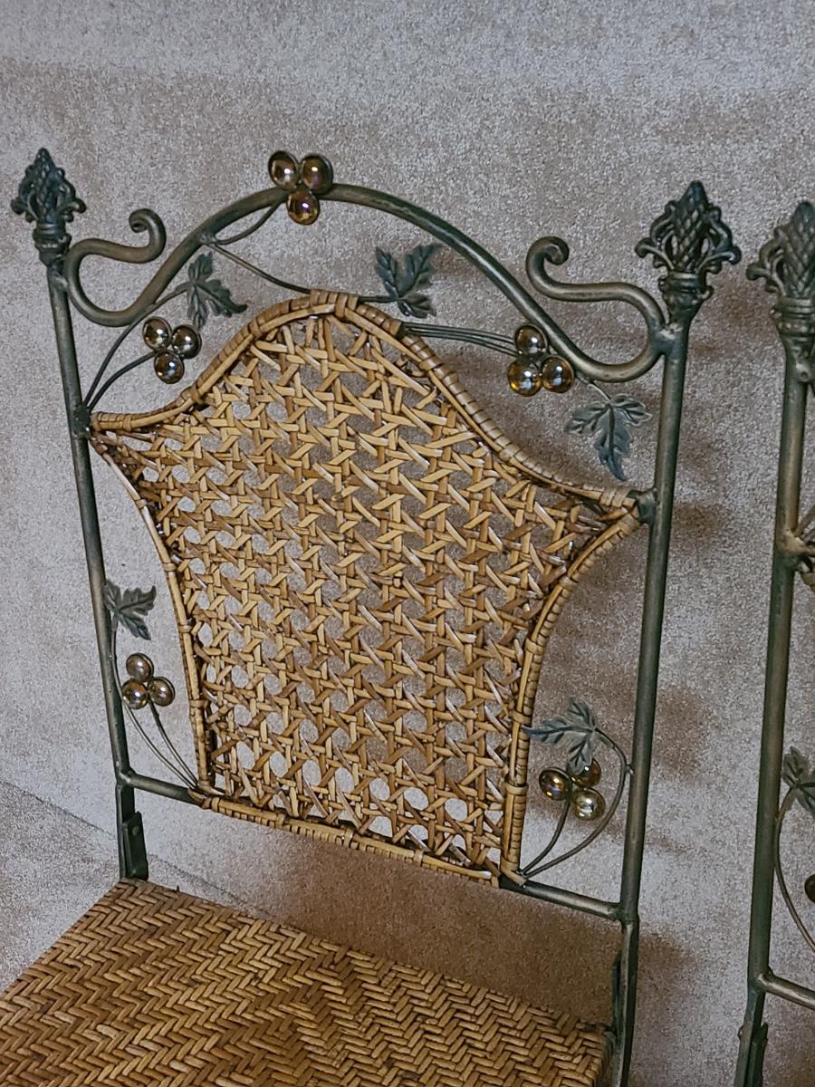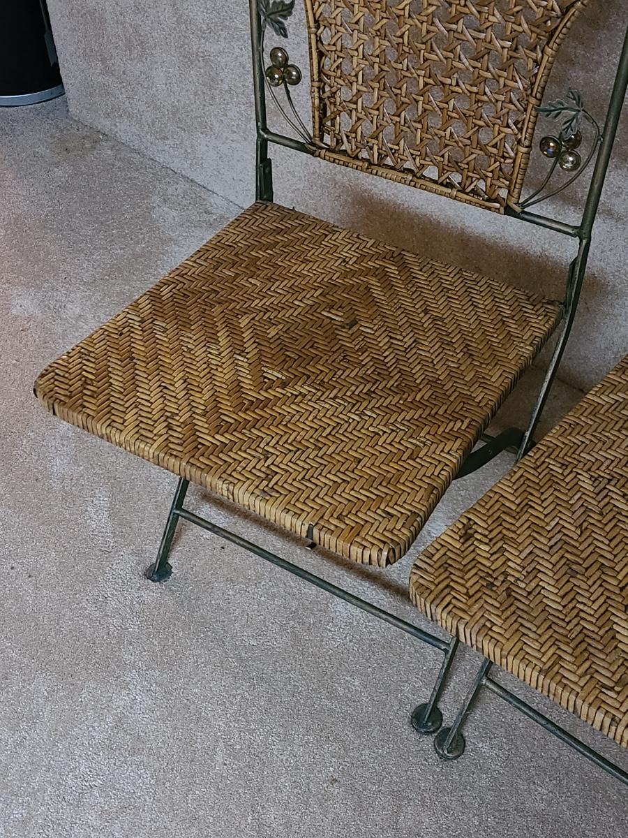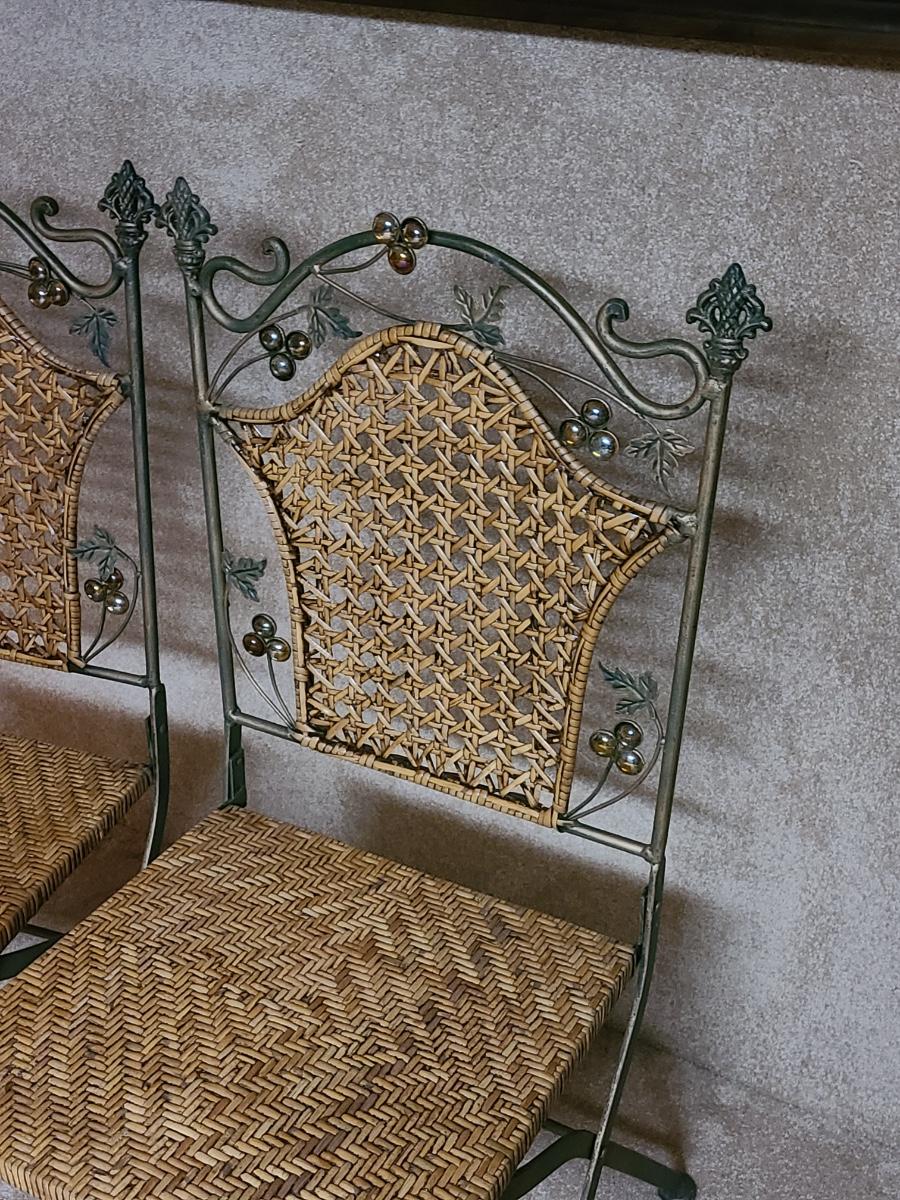 These lovely chairs are metal and rattan, and have been used indoors for patio chairs. They show minimal wear. The pricing code on the bottom is from a home chain store and the last two digits show the retail, or $30 a chair. Please see all pictures as they are the best representation of the items. The pictures show condition, measurements if taken, and what is included in the lot. Due to the large amount that we photograph and the time frame, we are not always able to take measurements. All items unless noted, are pre-owned and have been used. If you purchased furniture, you must bring help. We do not allow one person to carry large furniture out on their own. Bring help, tools and a truck for the safety of our client’s homes, and your personal safety. Company policy. Thank you.