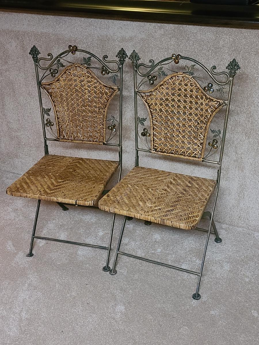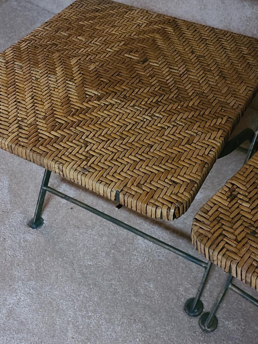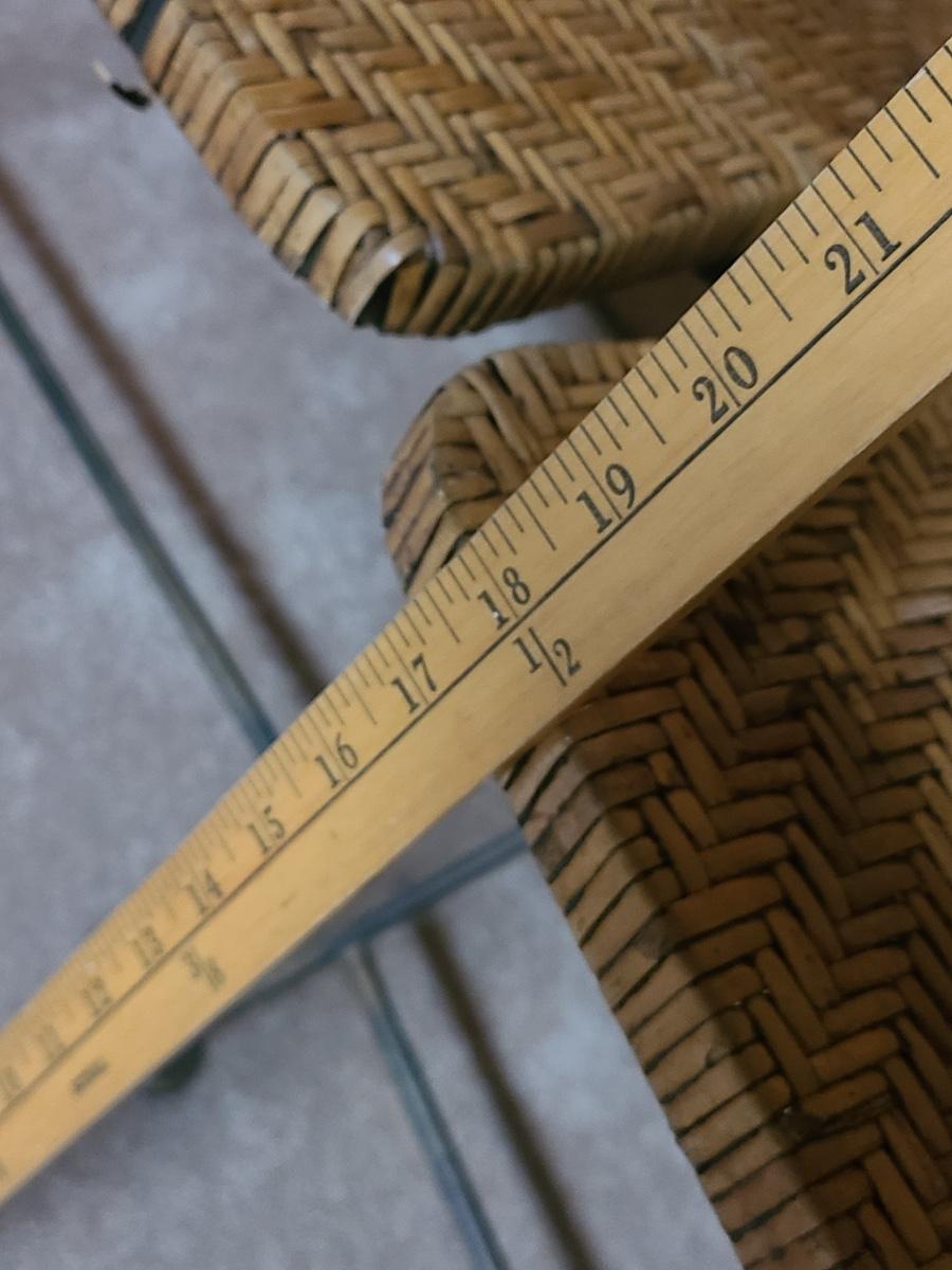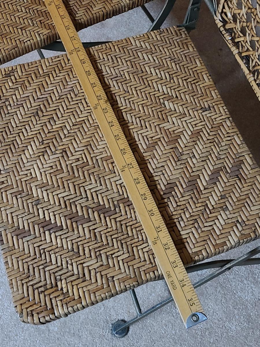 These lovely chairs are metal and rattan, and have been used indoors for patio chairs. They show minimal wear. The pricing code on the bottom is from a home chain store and the last two digits show the retail, or $30 a chair. Please see all pictures as they are the best representation of the items. The pictures show condition, measurements if taken, and what is included in the lot. Due to the large amount that we photograph and the time frame, we are not always able to take measurements. All items unless noted, are pre-owned and have been used. If you purchased furniture, you must bring help. We do not allow one person to carry large furniture out on their own. Bring help, tools and a truck for the safety of our client’s homes, and your personal safety. Company policy. Thank you.