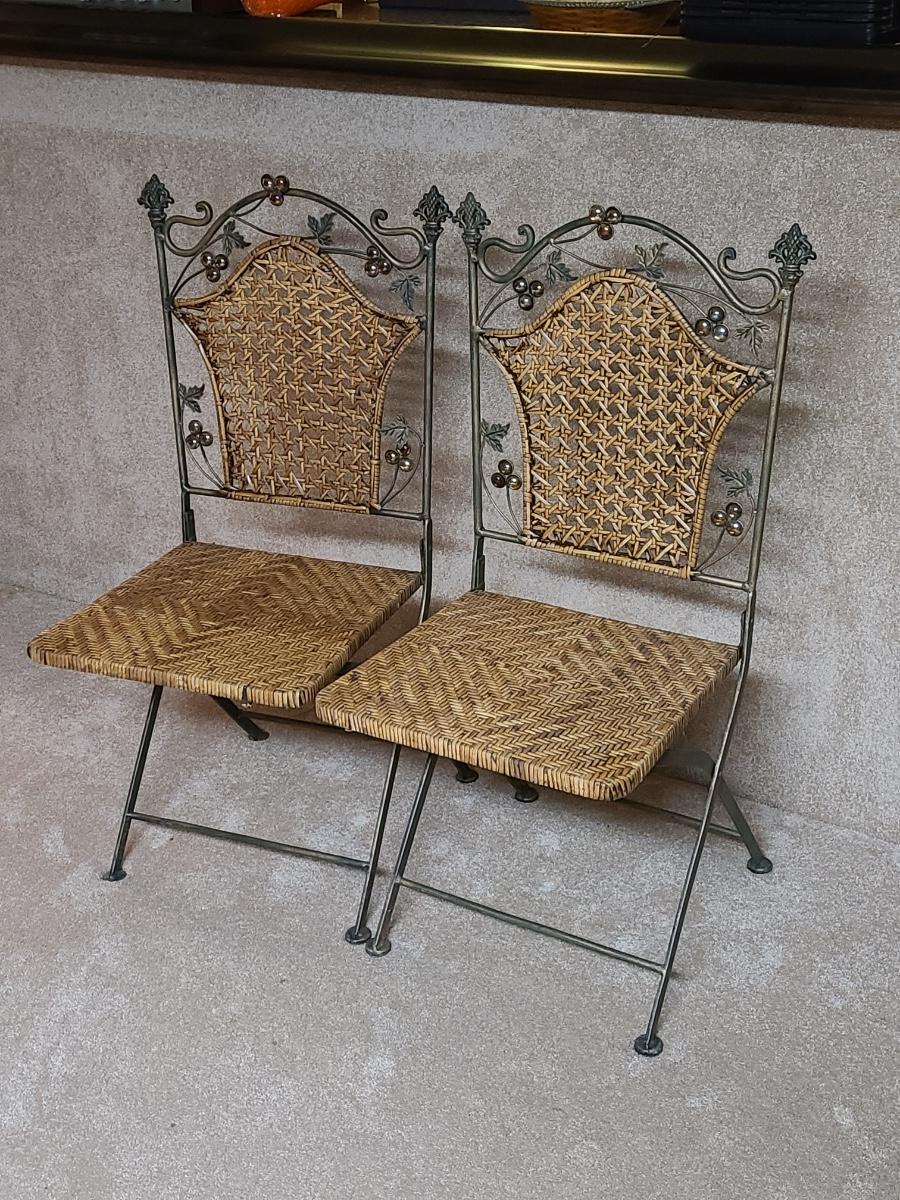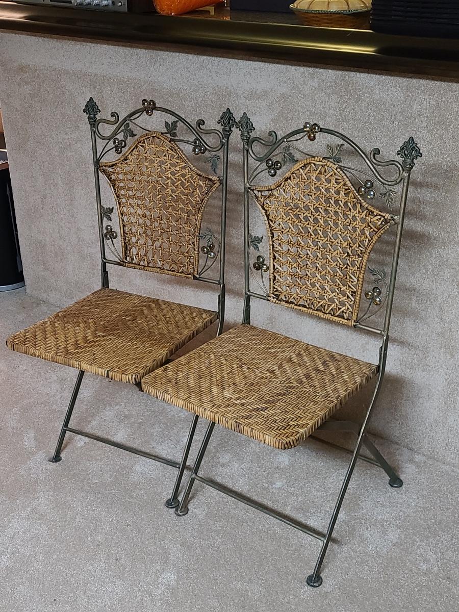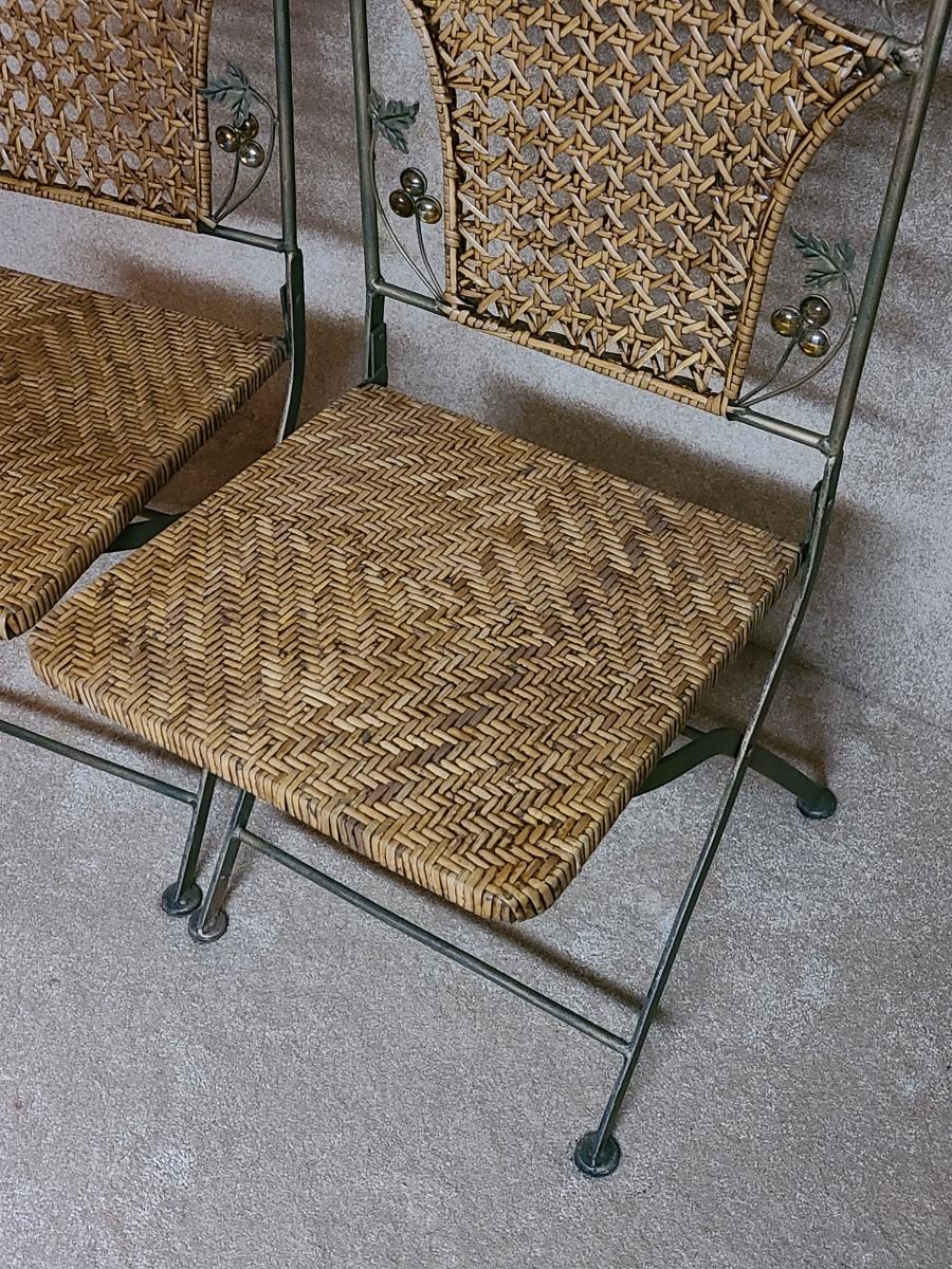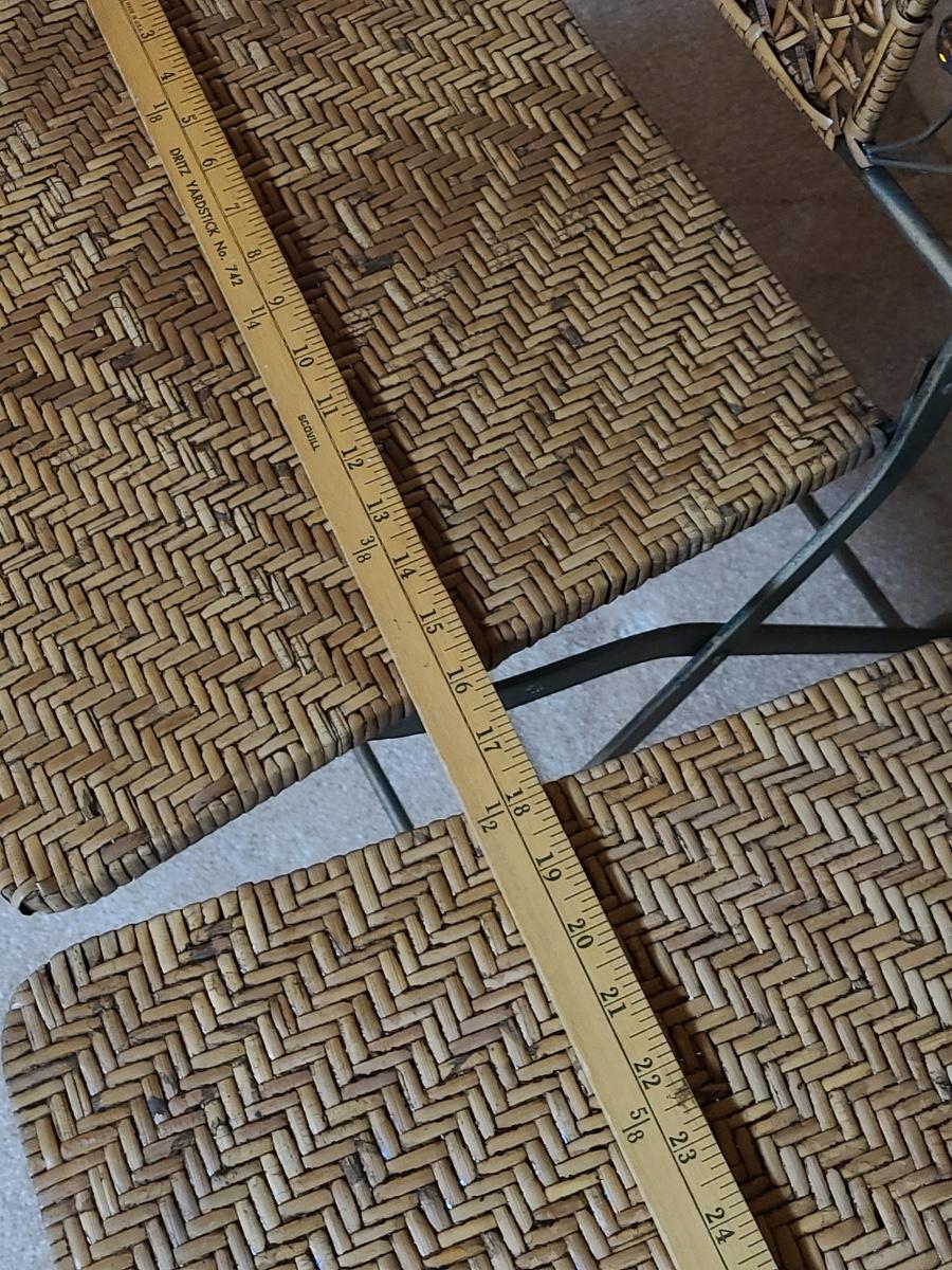 These lovely chairs are metal and rattan, and have been used indoors for patio chairs. They show minimal wear. The pricing code on the bottom is from a home chain store and the last two digits show the retail, or $30 a chair. Please see all pictures as they are the best representation of the items. The pictures show condition, measurements if taken, and what is included in the lot. Due to the large amount that we photograph and the time frame, we are not always able to take measurements. All items unless noted, are pre-owned and have been used. If you purchased furniture, you must bring help. We do not allow one person to carry large furniture out on their own. Bring help, tools and a truck for the safety of our client’s homes, and your personal safety. Company policy. Thank you.