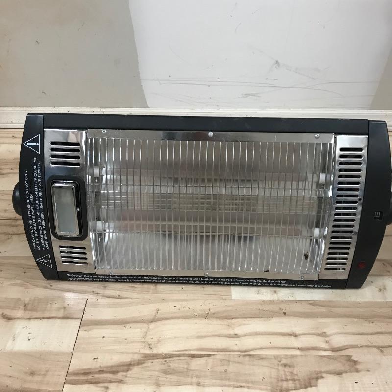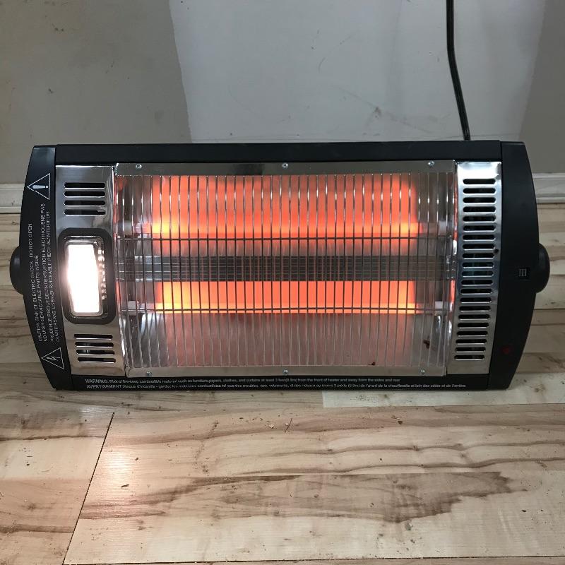 Compact space heater puts out a lot of heat! Perfect timing for this lot! Quartz Heater with Light model HQ1500 has an attached adjustable mount and measures approximately 24” x 12” and can be mounted 10” off wall. Heater was used in woodworking shop and currently has a nice cut wood smell when turned on. See photos. No shipping.