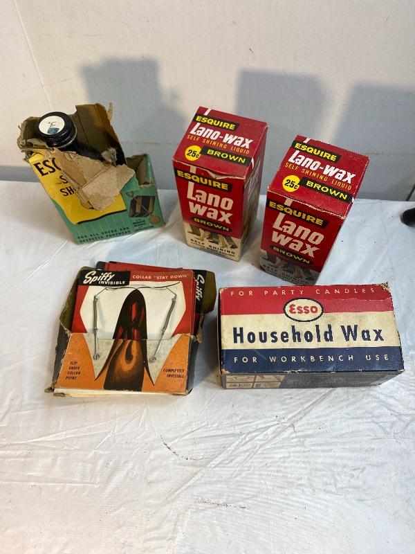 Lot 264 s Vintage Household Items ESSO Shoe Shine Spiffy Boxes