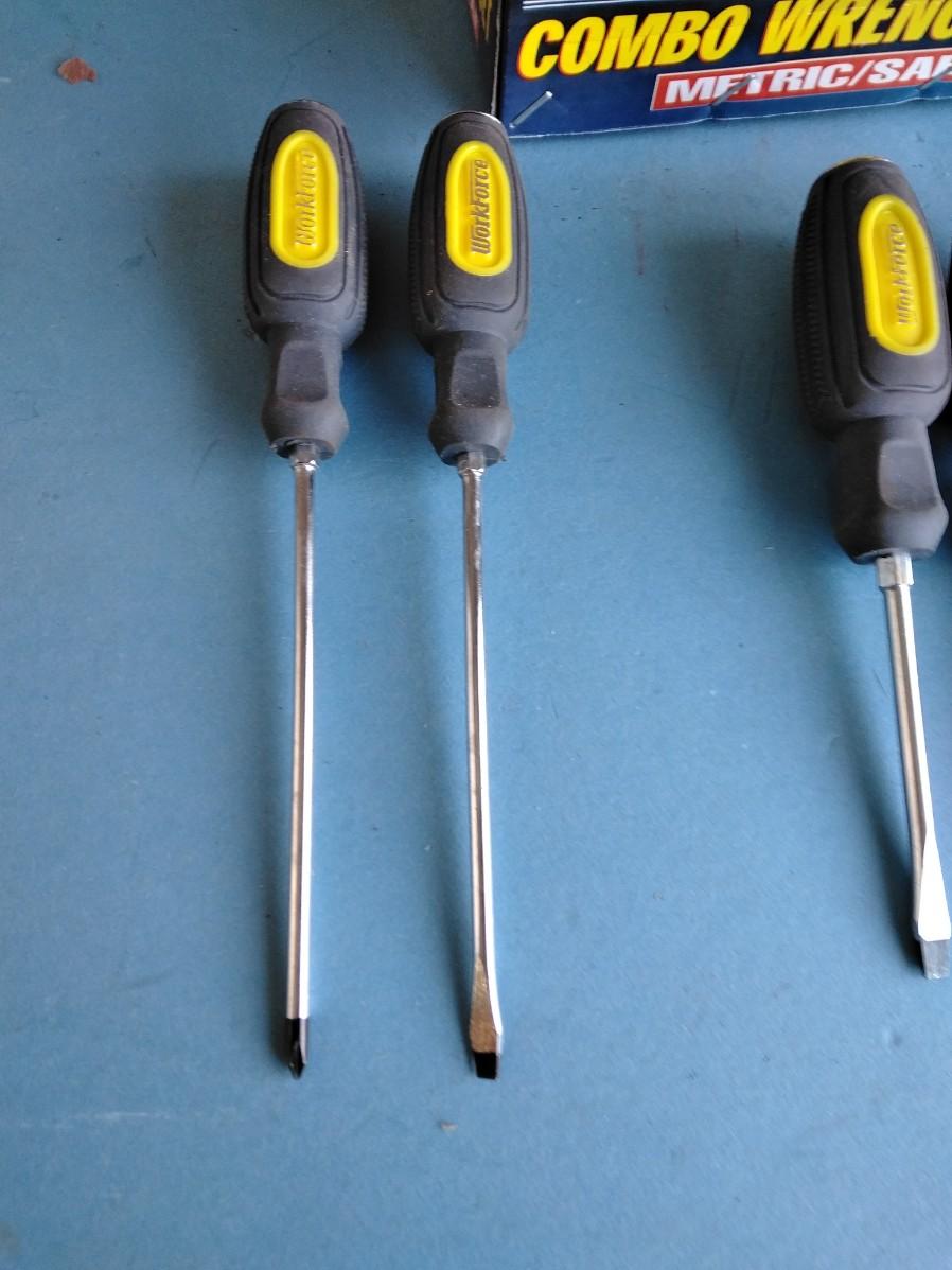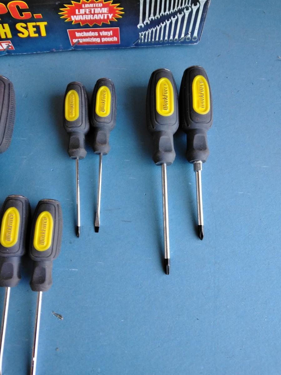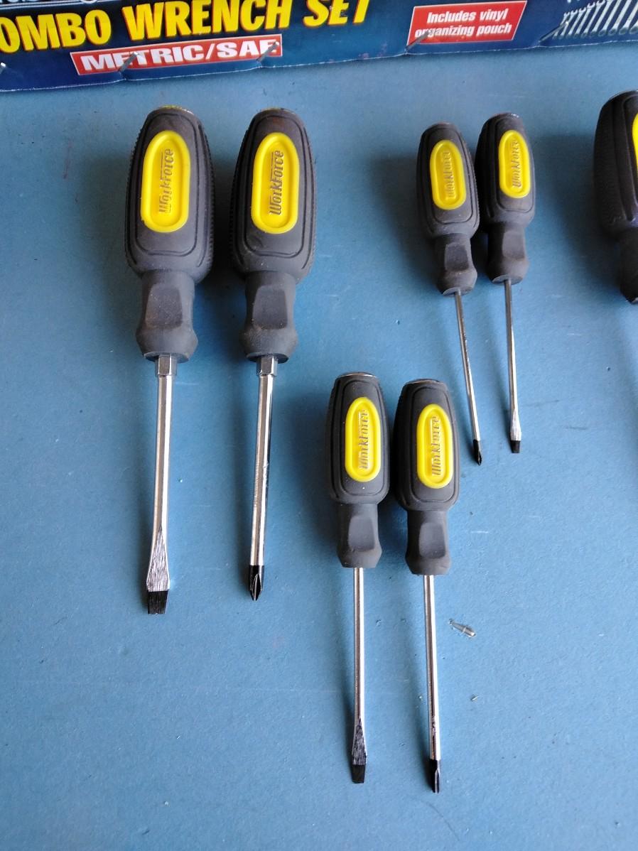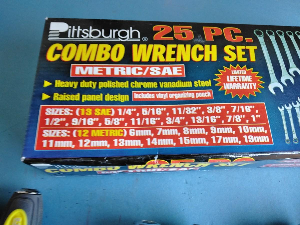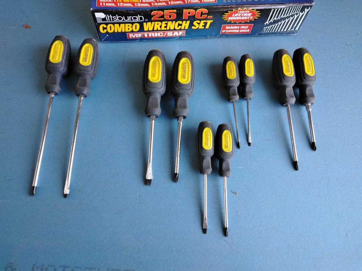 SCREWDRIVERS WITH A NEW PITSBURGH 25 PIECE COMBO WRENCH SET.