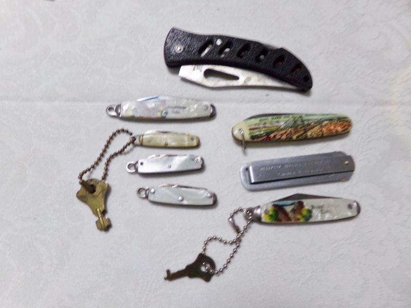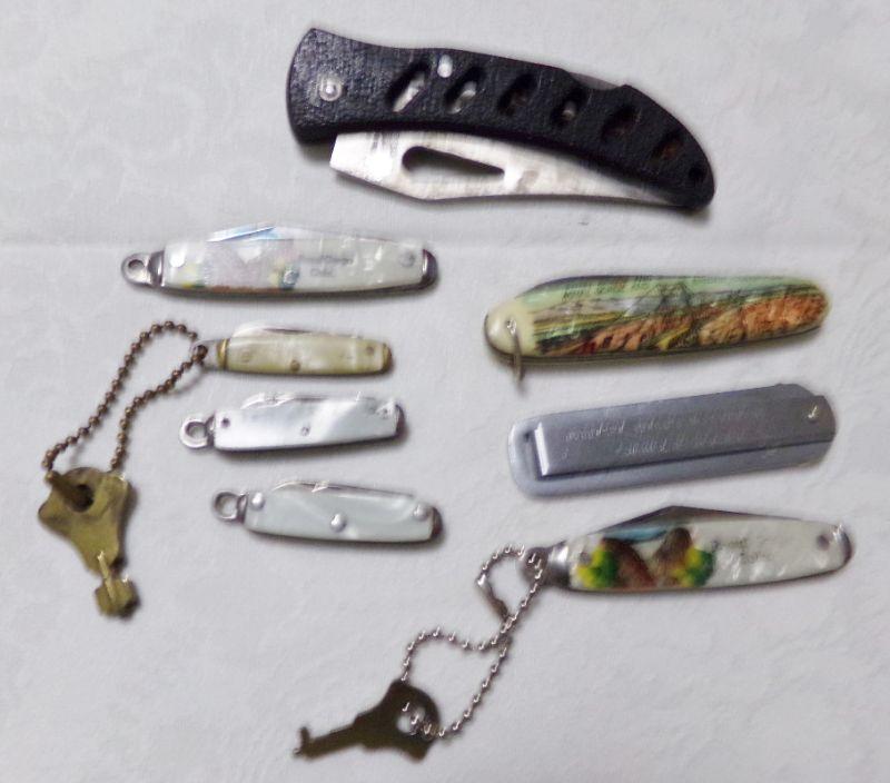 3 KNIVES FROM ROYAL GORGE, 3 - 1 1/2 INCHES LONG AND 2 OTHERS FOR A TOTAL OF 8