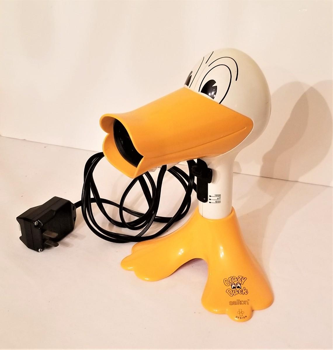Vintage (1970's) Crazy Duck Blow Dryer. Working condition. 9.5" tall. No box. Perfect for doing a kid's hair.