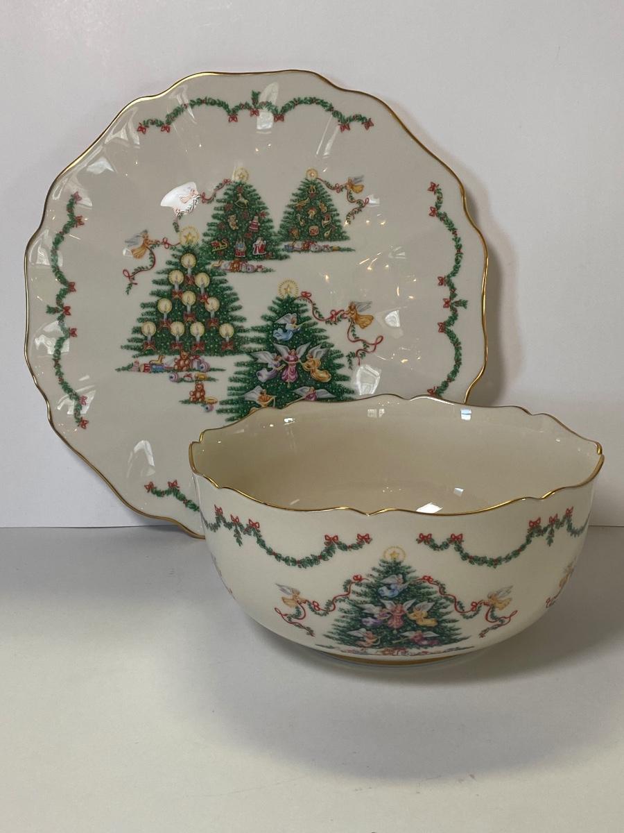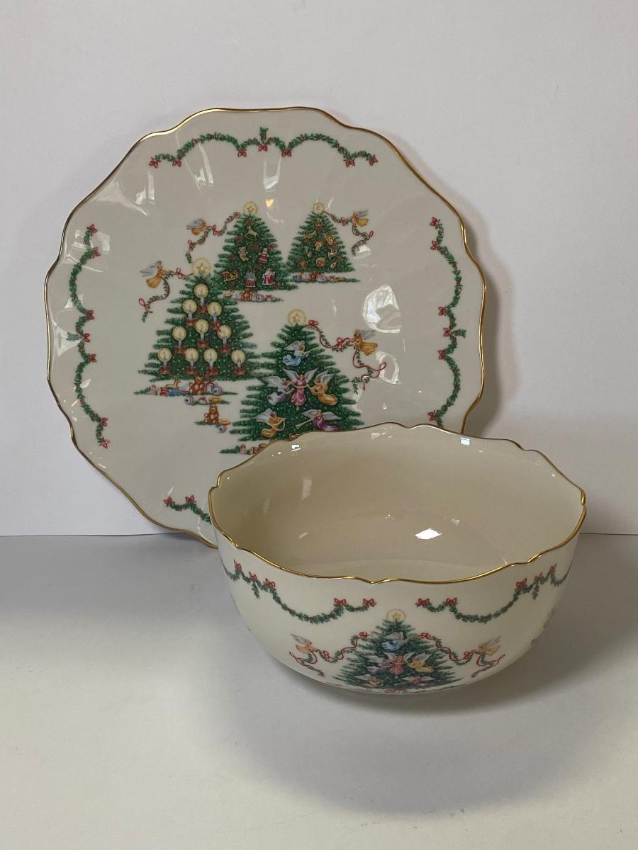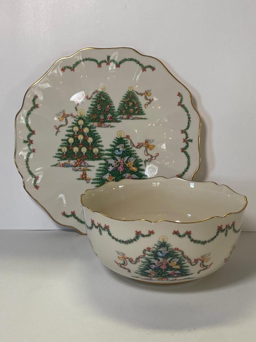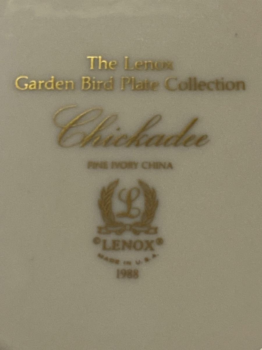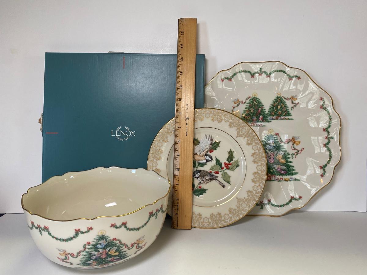 Lenox bowl and plate from "The Joys of Christmas," 1988 Chickadee plate from the Lenox Garden Bird Plate Collection. Chickadee plate includes Lenox box.