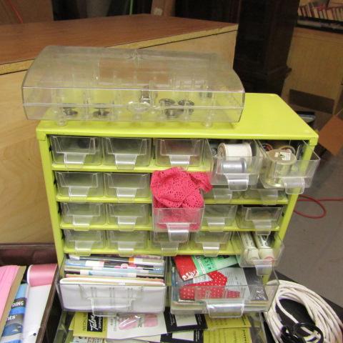 ZIPPERS, RIBBON, THREAD, BOBBIN TRAY AND MUCH MORE