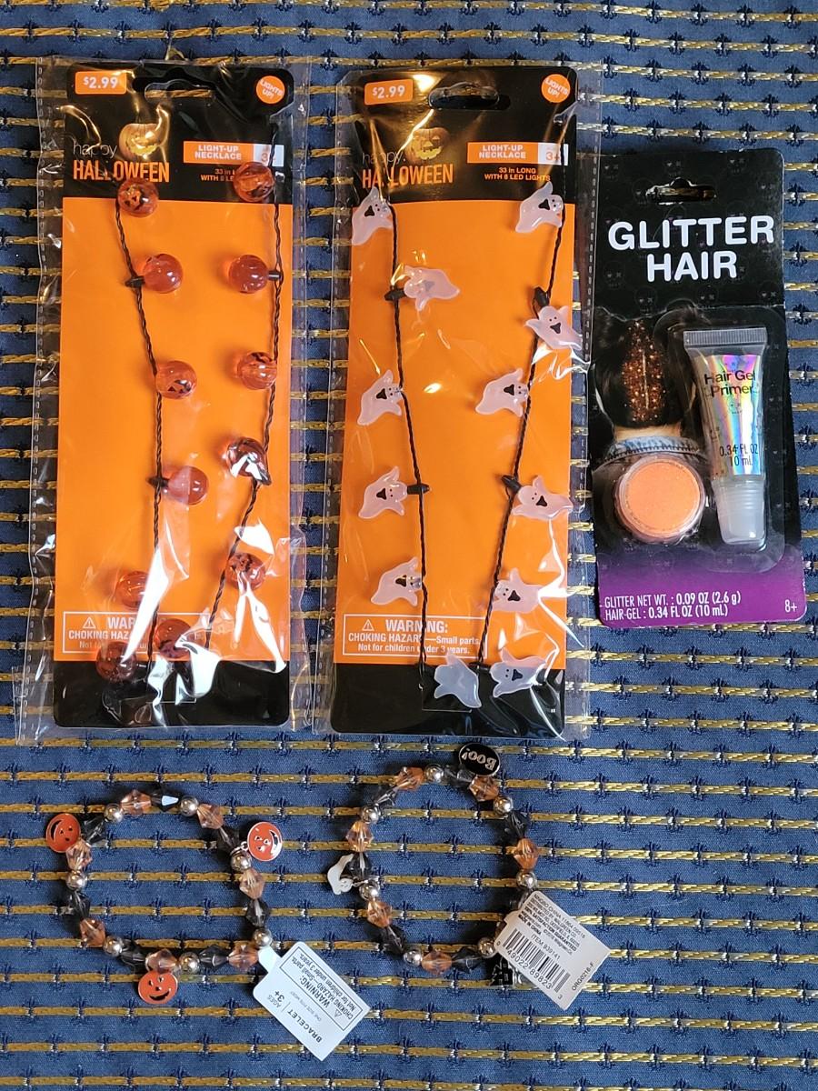 Lot 265: Flashing Halloween Necklaces, Hair Glitter and Bracelets