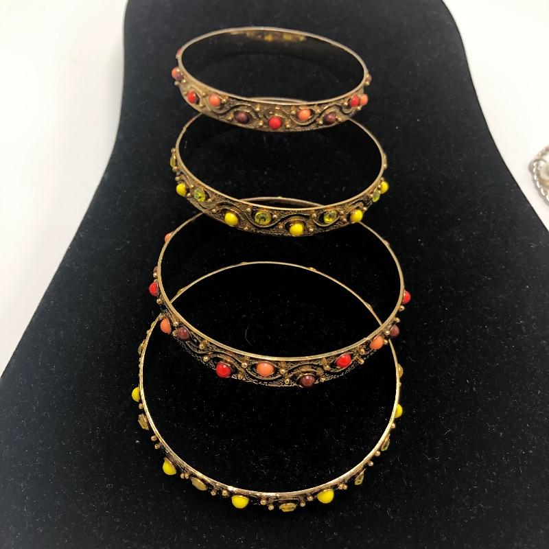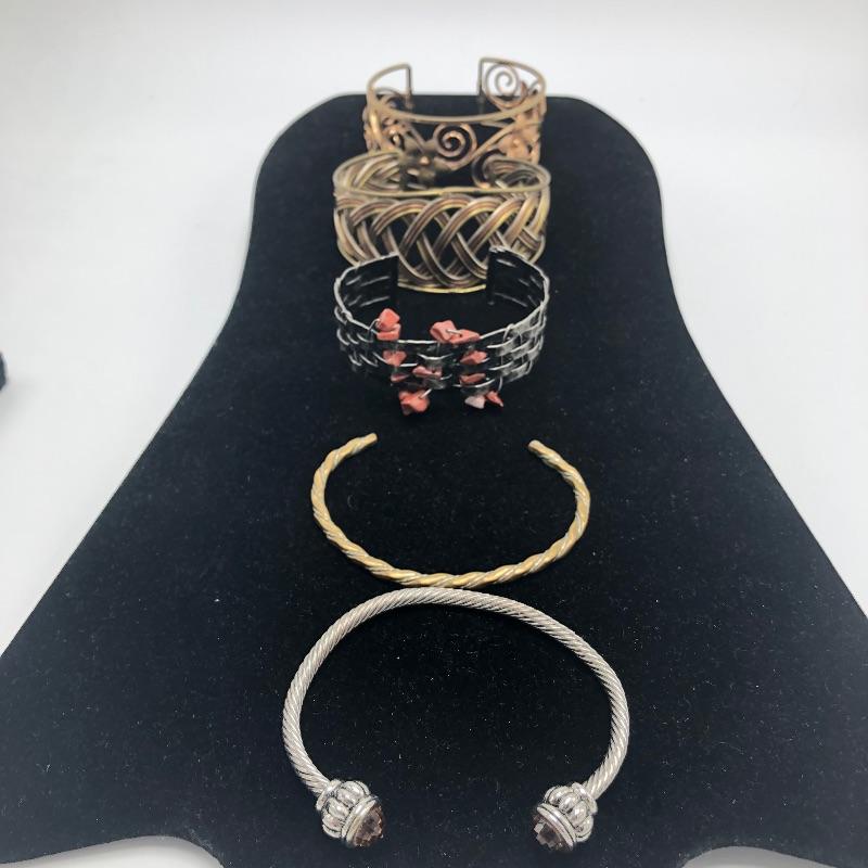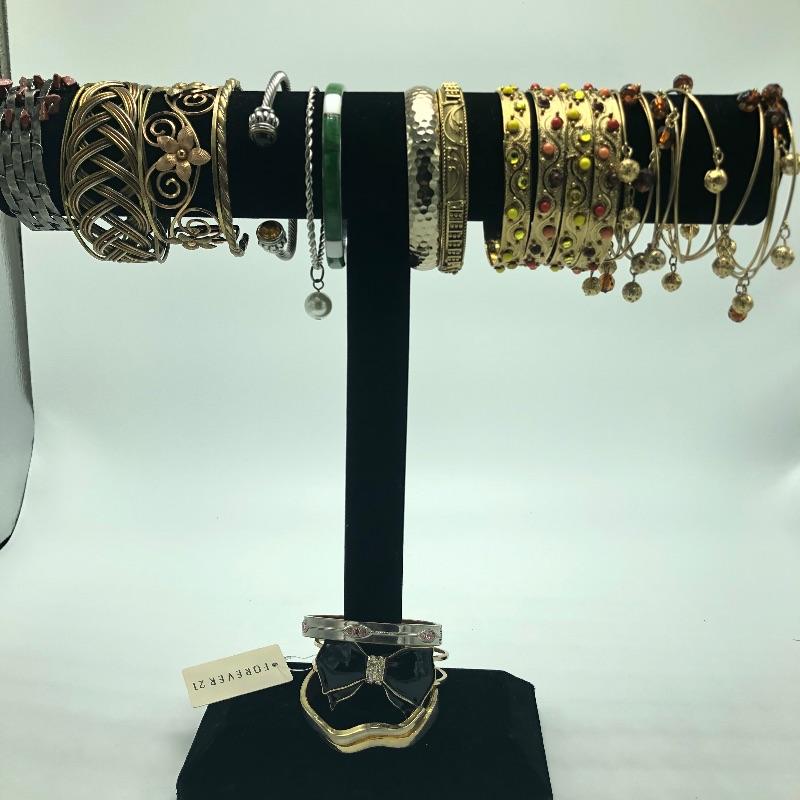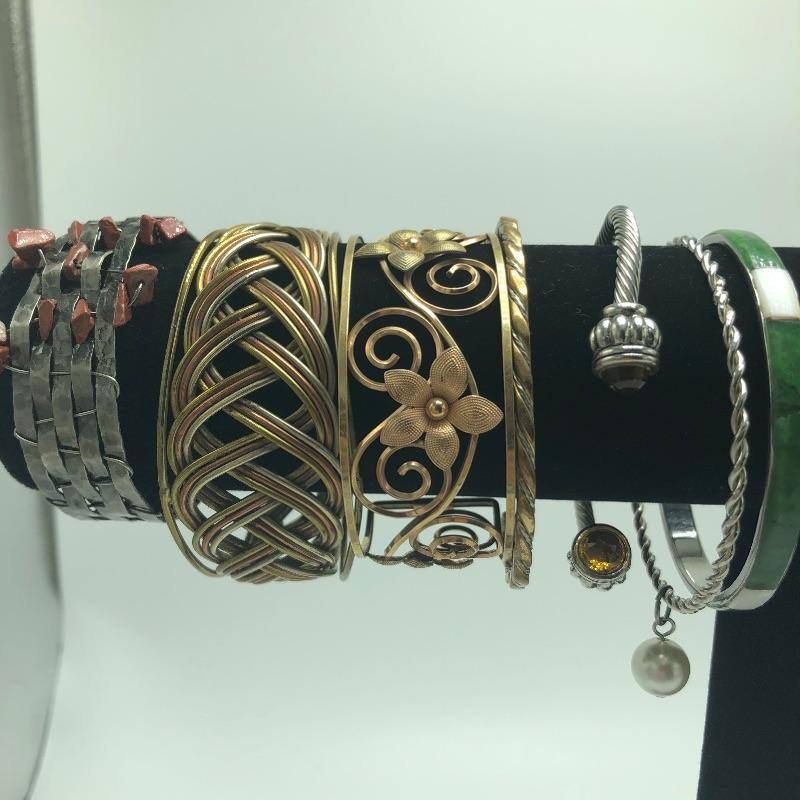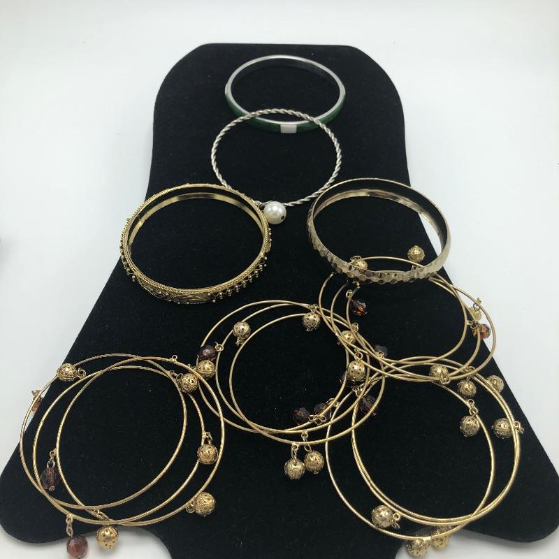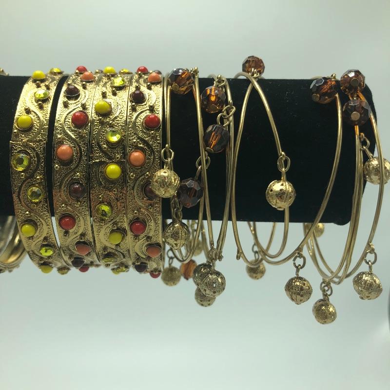 Adorn your wrists with this large assortment of bangles, cuffs and bracelets. A total of twelve bangles, five cuffs and three bracelets.
