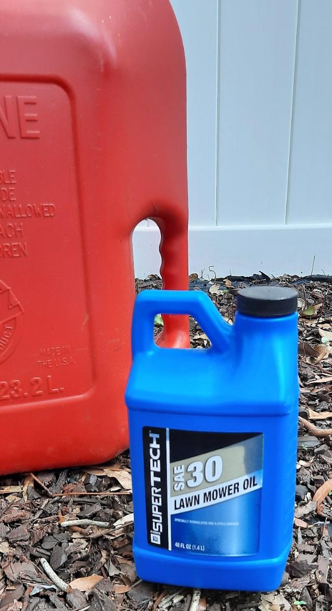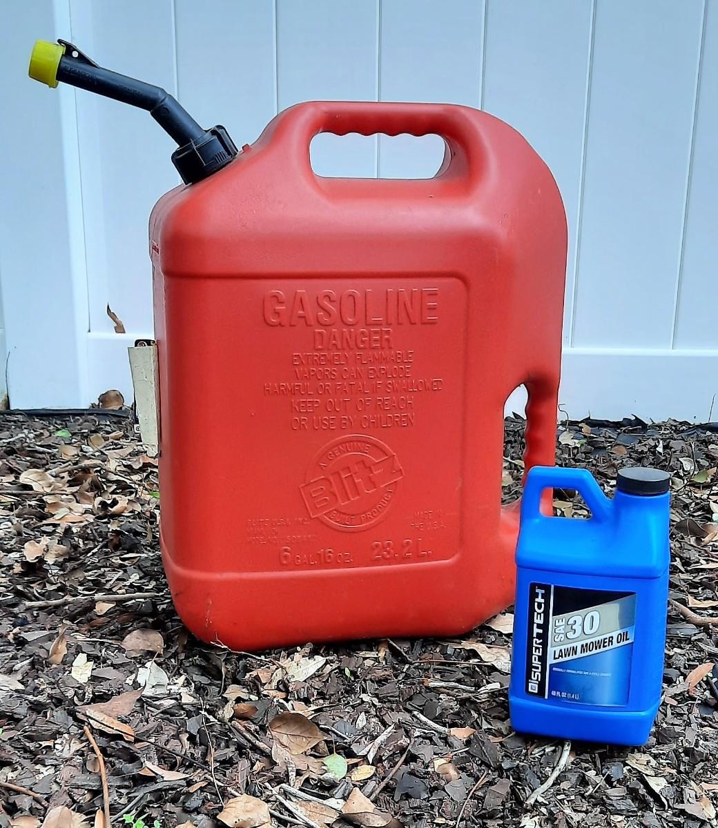 Lot 265 Blitz Gas Can (6 gal.16 oz.) & Super Tech STE30 Lawn Mower Oil