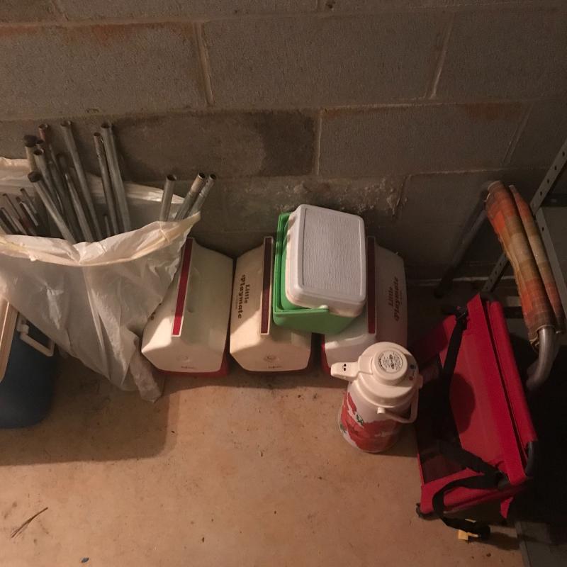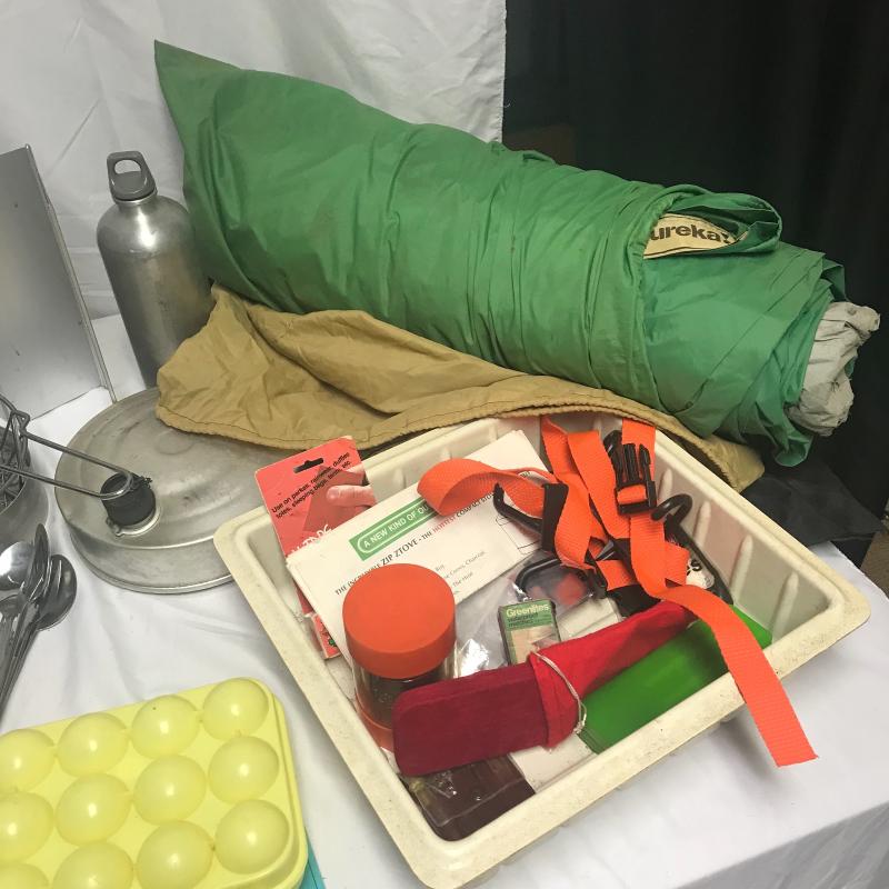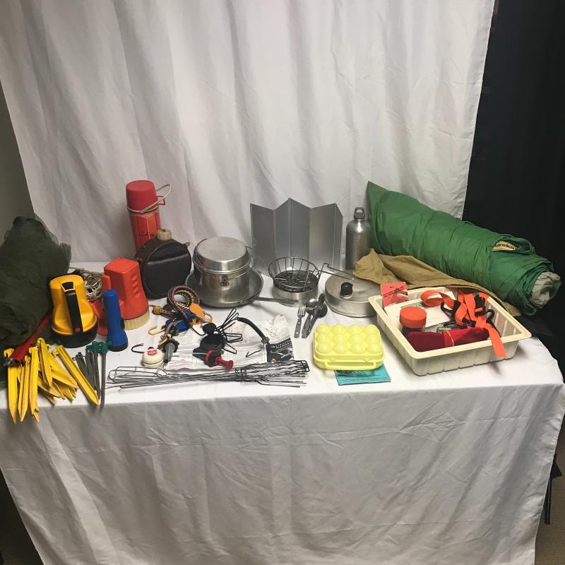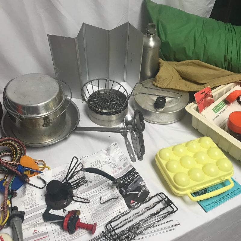 Backpacking meets car camping, meets modern and retro camping. It’s all here! Coolers, chair, metal frame back pack, kitchen equipment, including burner, small lantern, two mosquito netting for cot or hammock, bungee cord, trowel, saw, flash lights, Eureka tent with poles and some extra poles too. Can not verify tent is complete and condition. A burner and water purifier kit that may need to be retired but may still be good too or used for parts. Local pick up only.