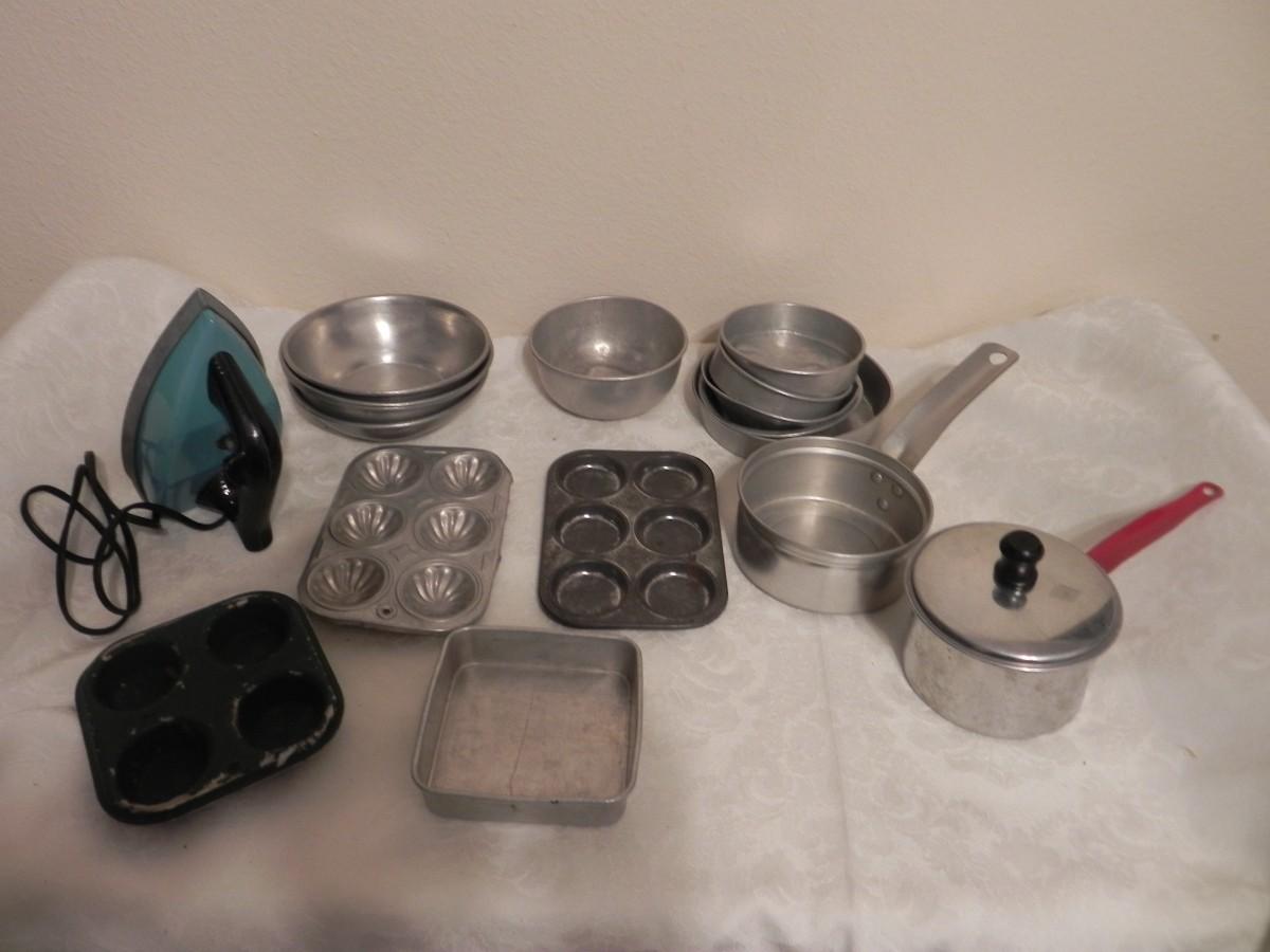 CHILD'S PLAY BAKING PANS AND TOY IRON