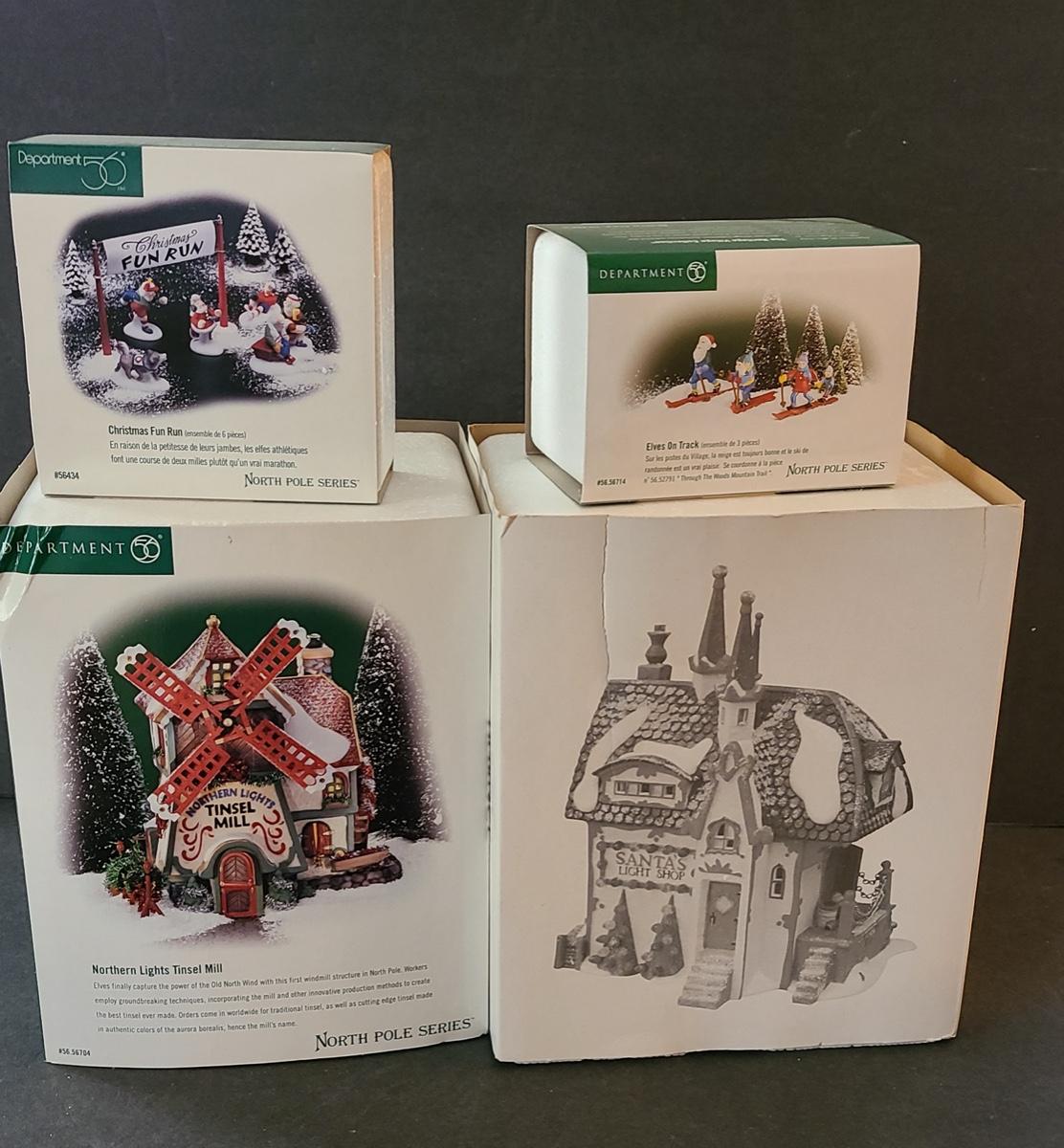 Lot 265: Dept 56: Northern Lights Tinsel Mill and More North Pole Series